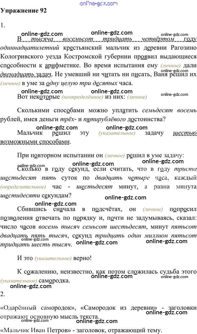 Готовые домашние задания по Русскому языку за 6 класс Учебник Быстрова, Кибирева Инновационная школа 2016 - Упражнения Часть 2 92