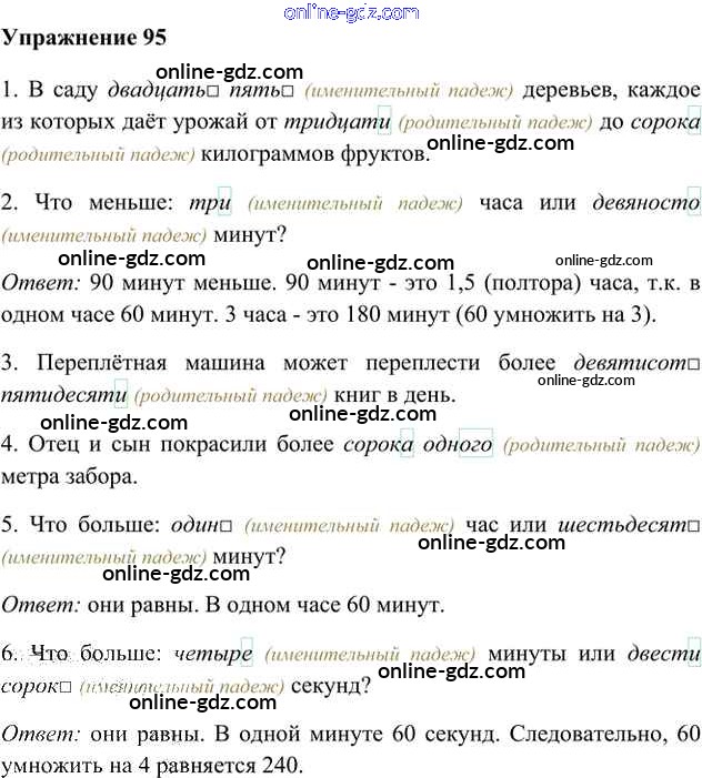 Готовые домашние задания по Русскому языку за 6 класс Учебник Быстрова, Кибирева Инновационная школа 2016 - Упражнения Часть 2 95