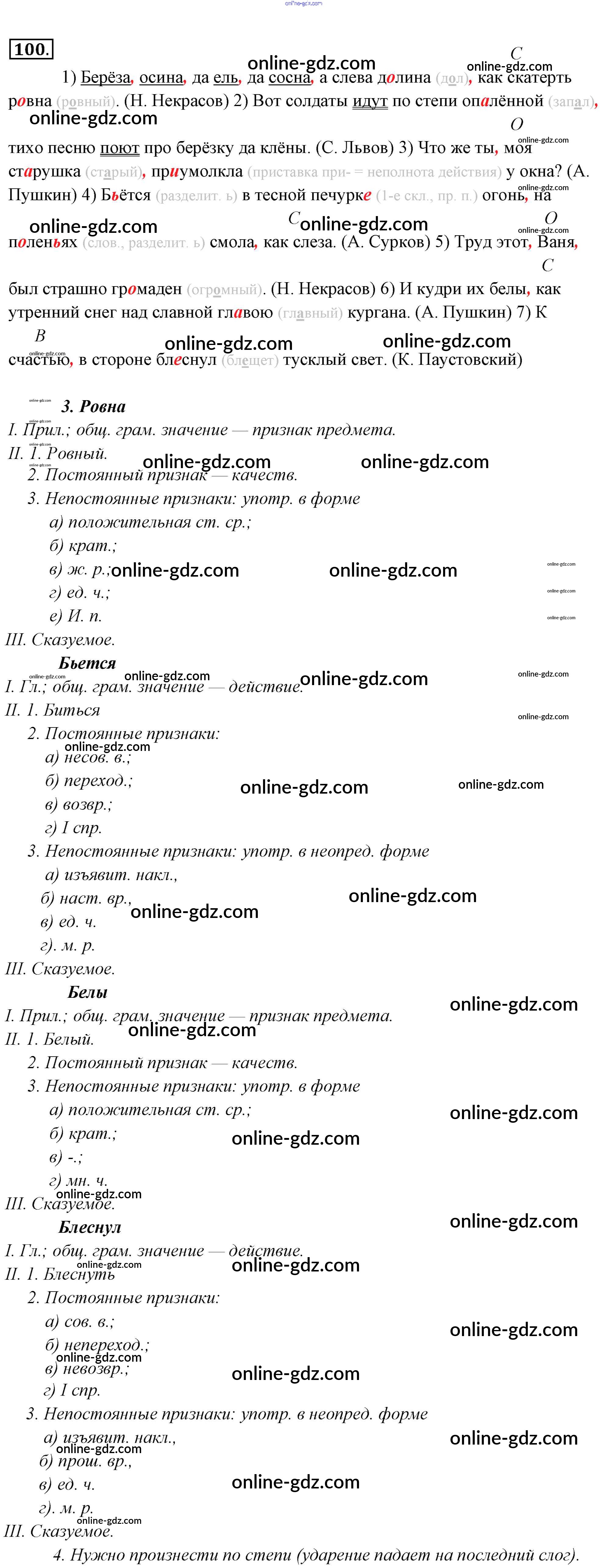 Готовые домашние задания по Русскому языку за 6 класс Учебник Львова, Львов 2013 - Упражнения 100