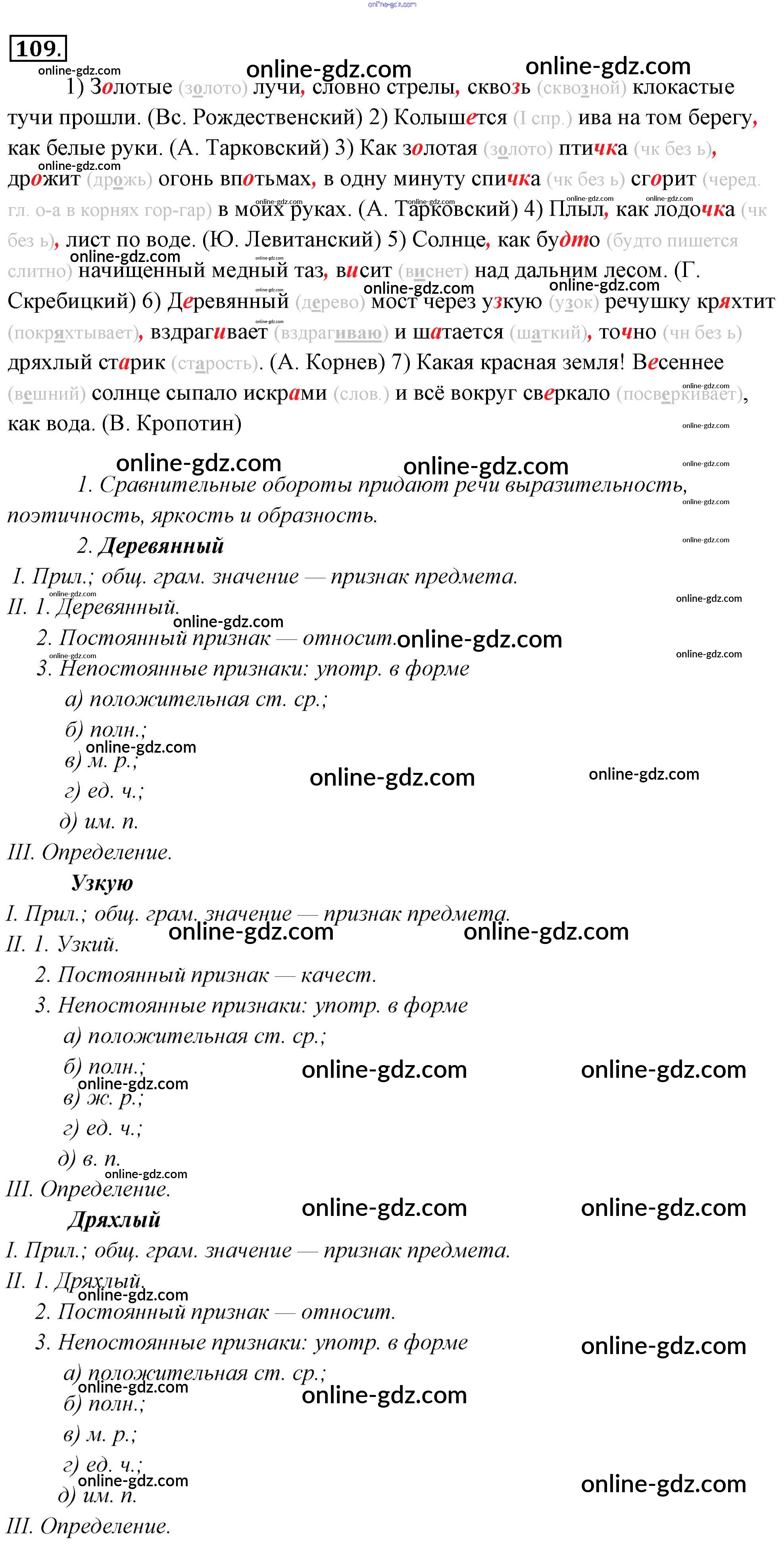 Готовые домашние задания по Русскому языку за 6 класс Учебник Львова, Львов 2013 - Упражнения 109