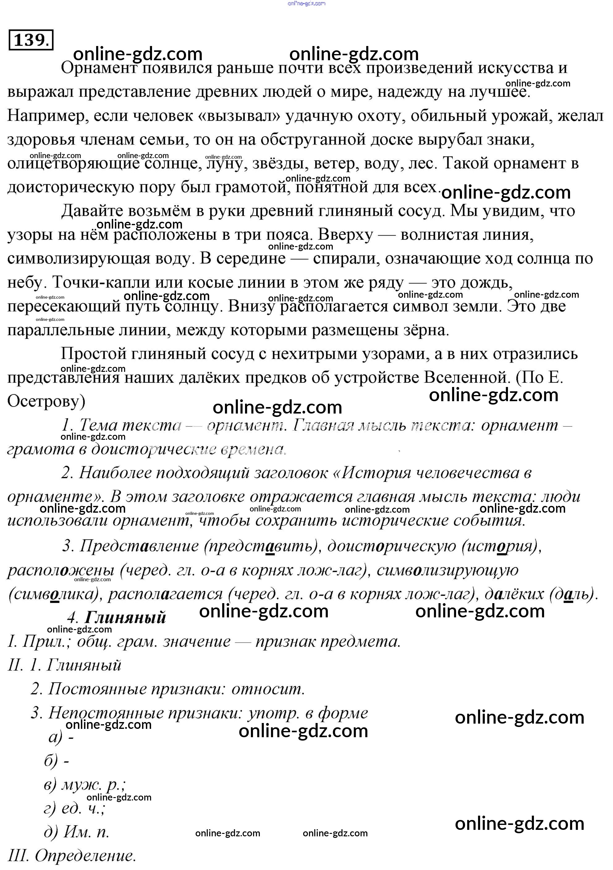 Готовые домашние задания по Русскому языку за 6 класс Учебник Львова, Львов 2013 - Упражнения 139