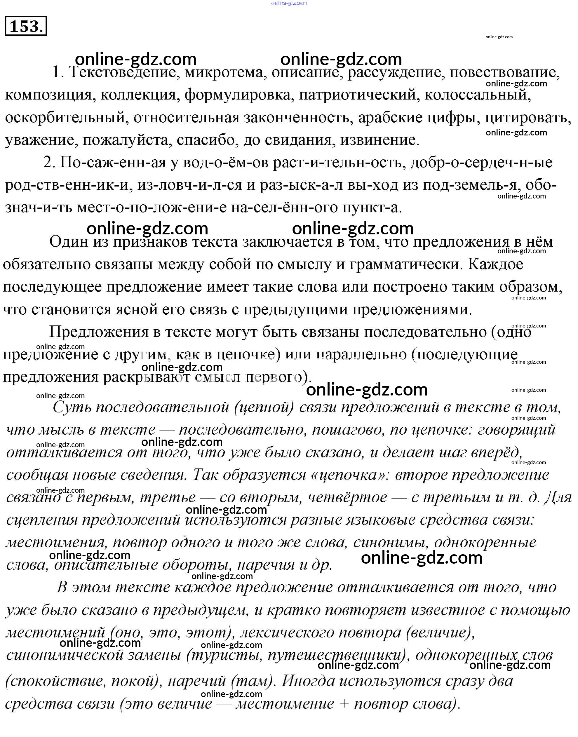 Готовые домашние задания по Русскому языку за 6 класс Учебник Львова, Львов 2013 - Упражнения 153