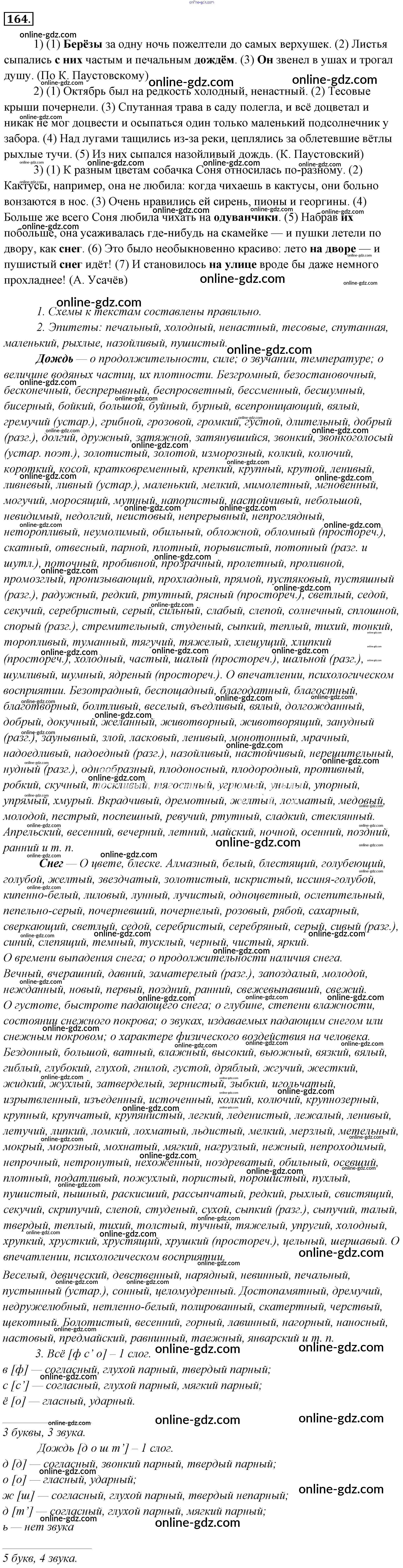 Готовые домашние задания по Русскому языку за 6 класс Учебник Львова, Львов 2013 - Упражнения 164