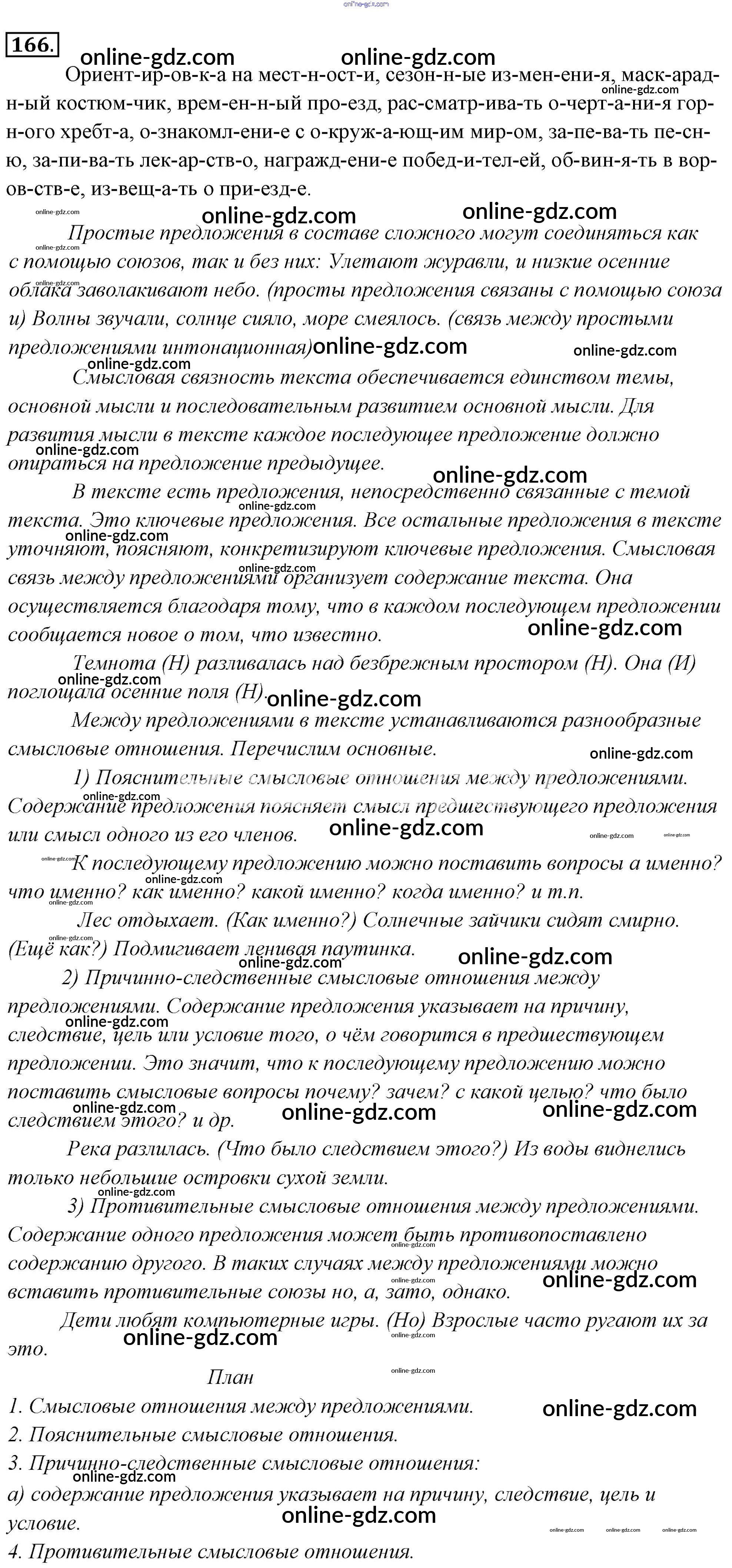 Готовые домашние задания по Русскому языку за 6 класс Учебник Львова, Львов 2013 - Упражнения 166