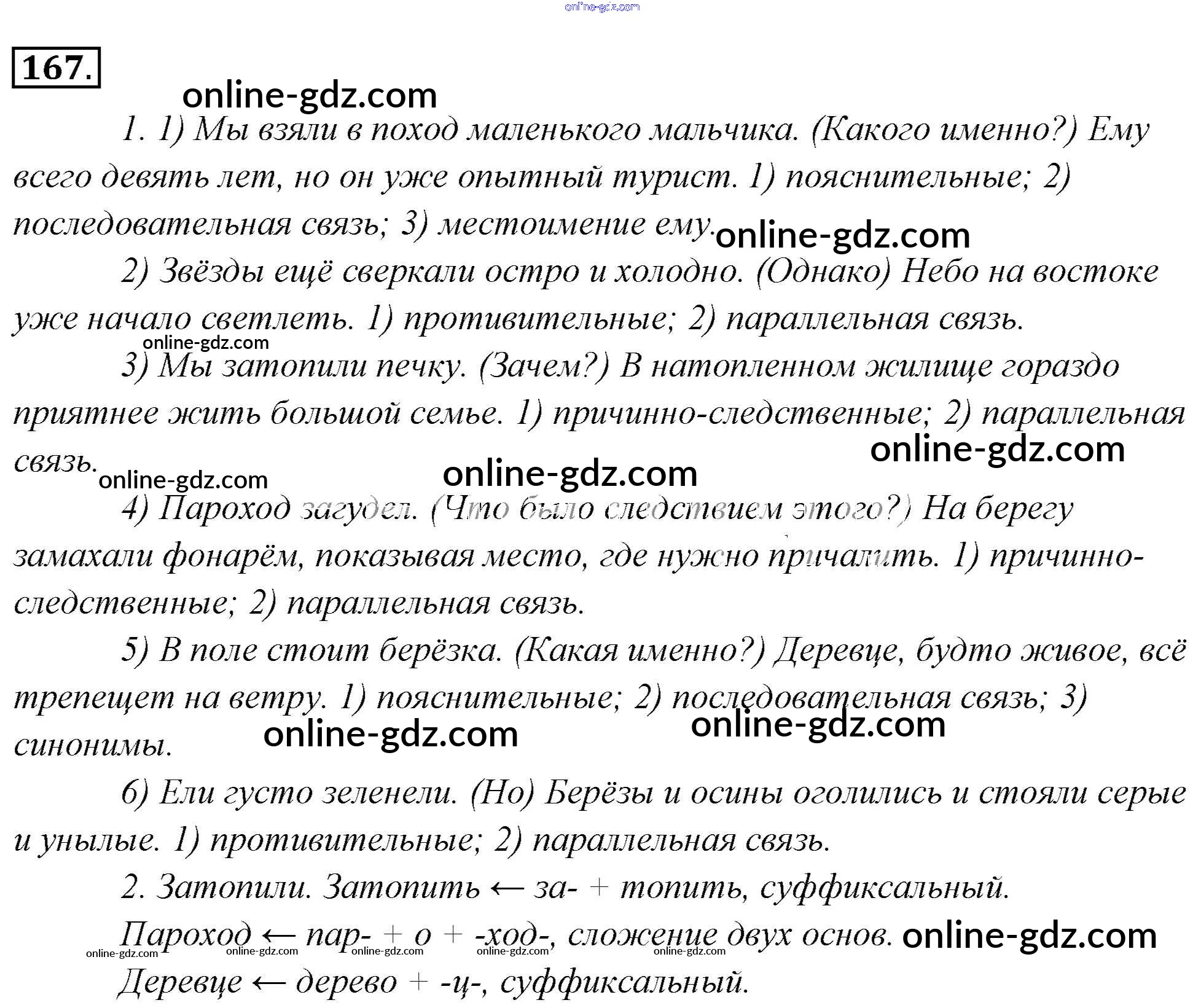 Готовые домашние задания по Русскому языку за 6 класс Учебник Львова, Львов 2013 - Упражнения 167