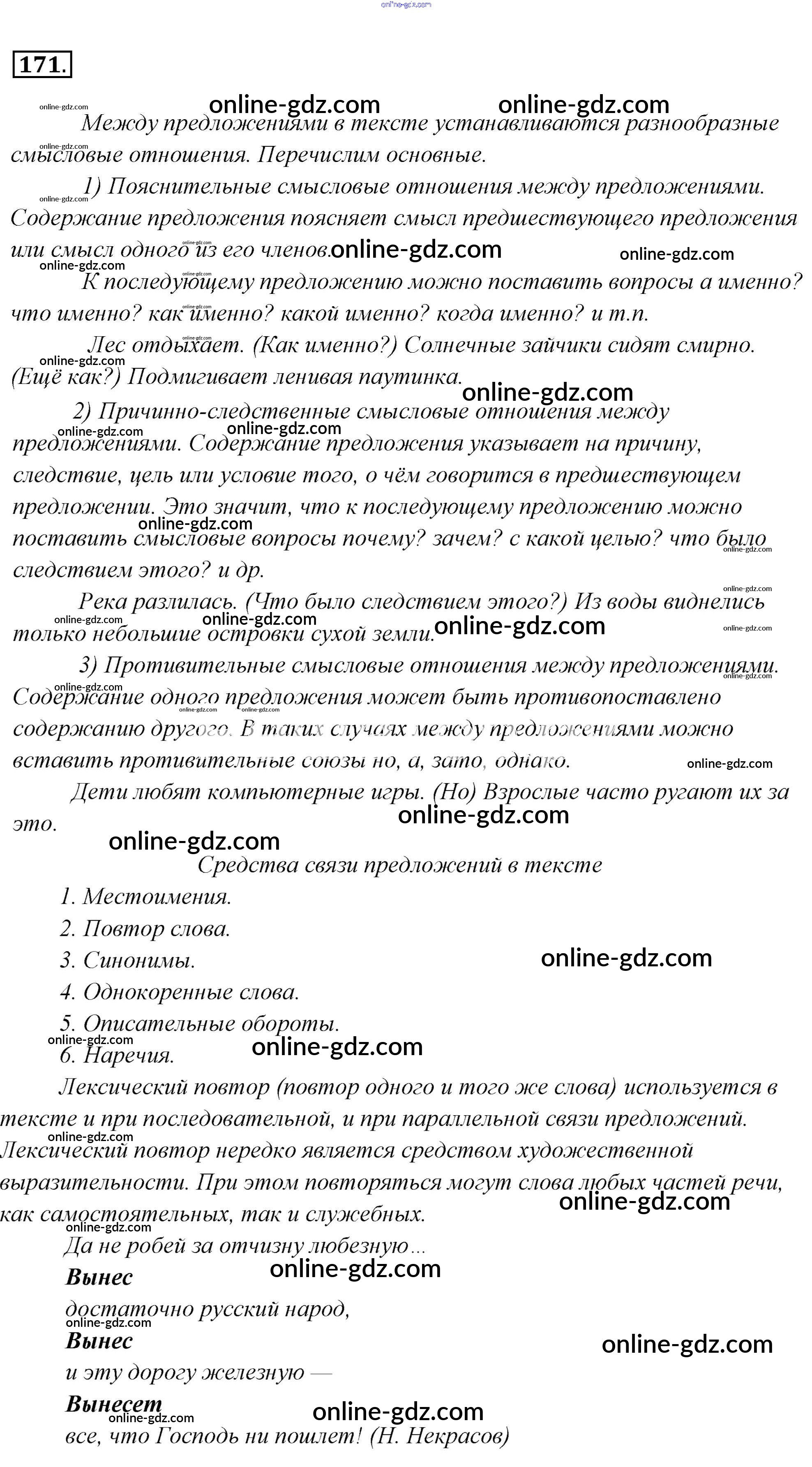 Готовые домашние задания по Русскому языку за 6 класс Учебник Львова, Львов 2013 - Упражнения 171