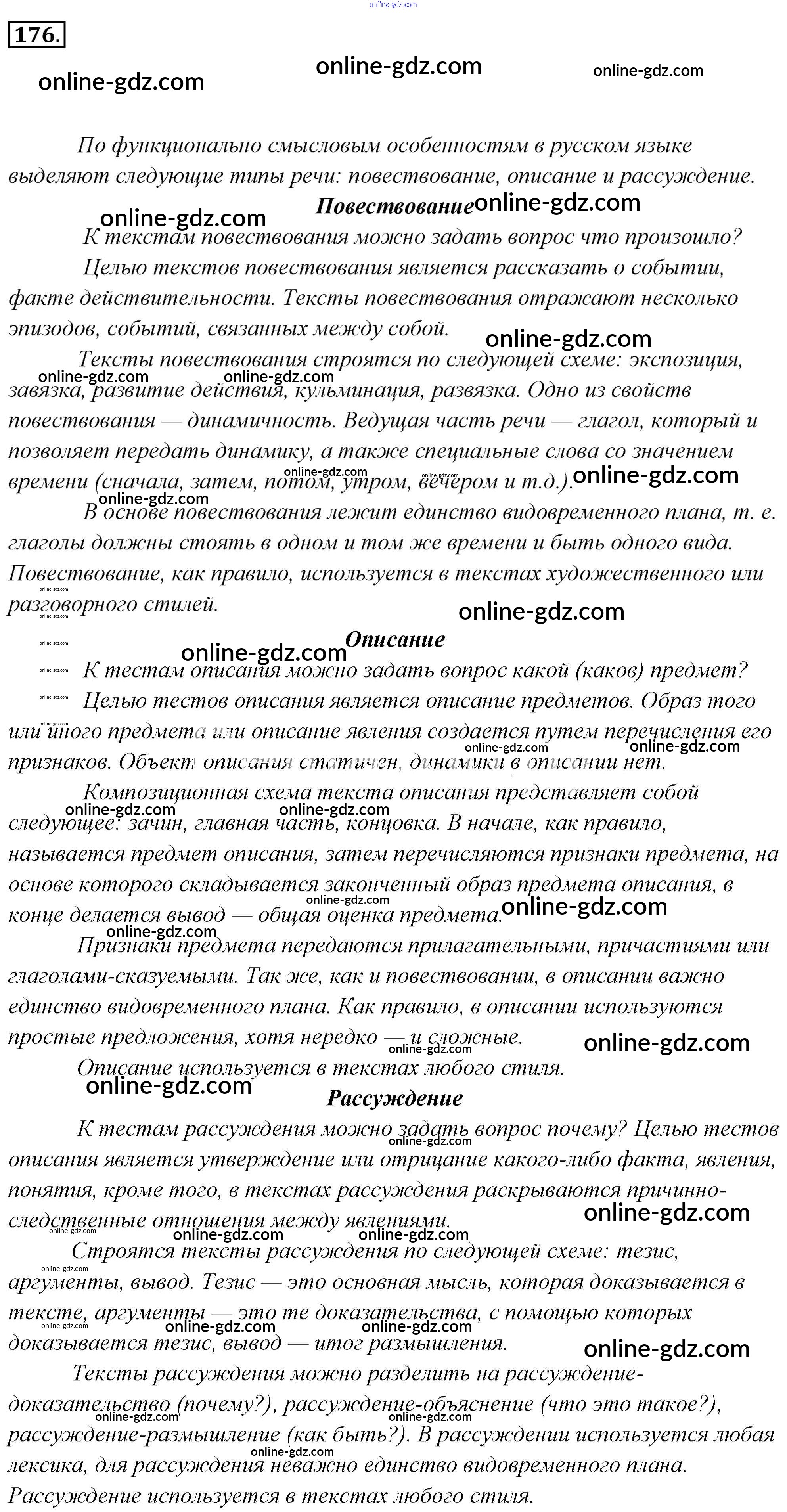 Готовые домашние задания по Русскому языку за 6 класс Учебник Львова, Львов 2013 - Упражнения 176