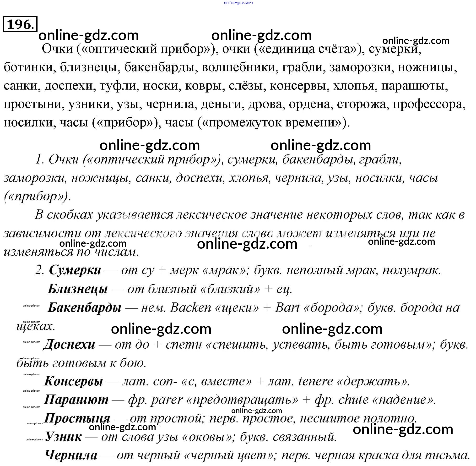 Готовые домашние задания по Русскому языку за 6 класс Учебник Львова, Львов 2013 - Упражнения 196