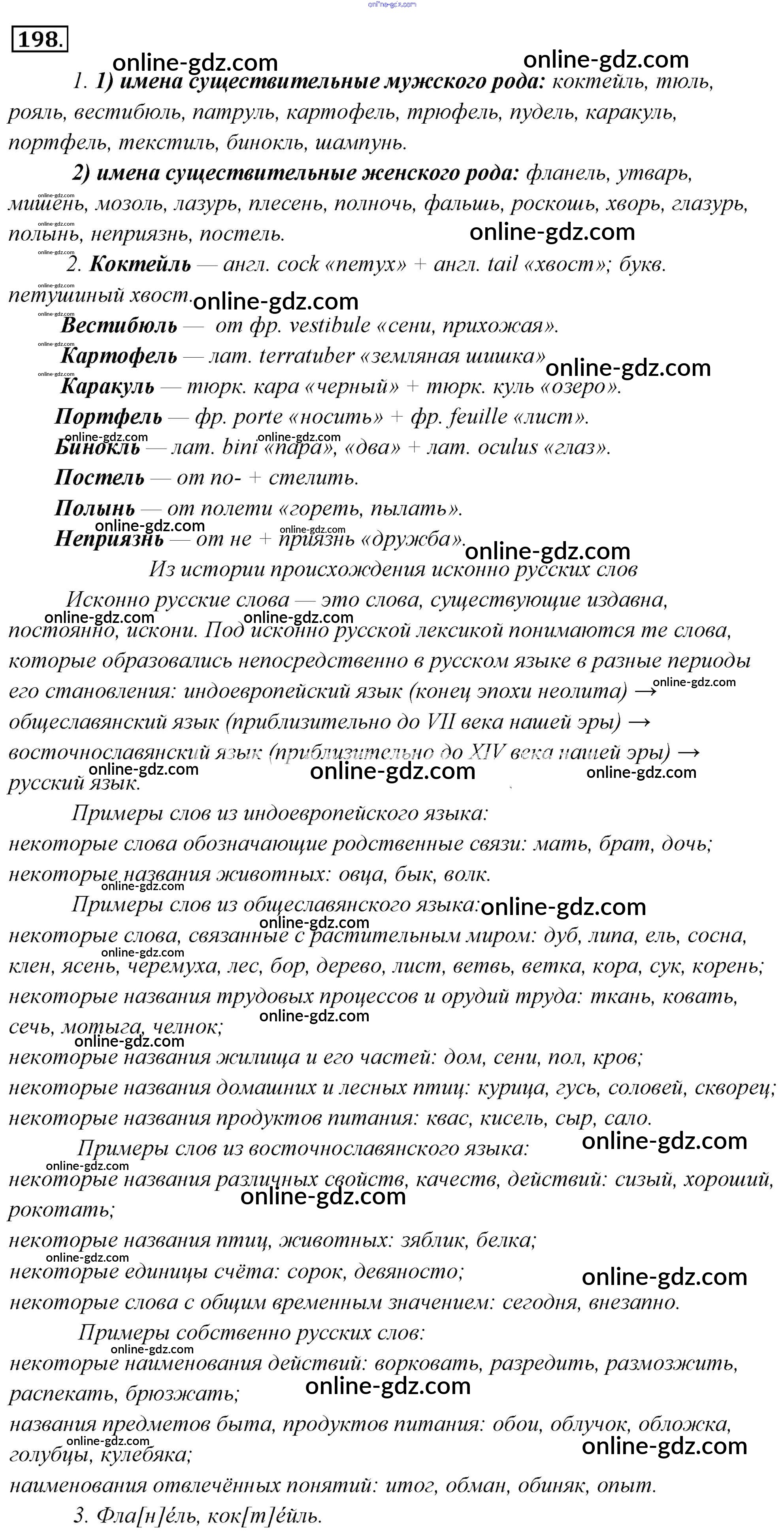 Готовые домашние задания по Русскому языку за 6 класс Учебник Львова, Львов 2013 - Упражнения 198