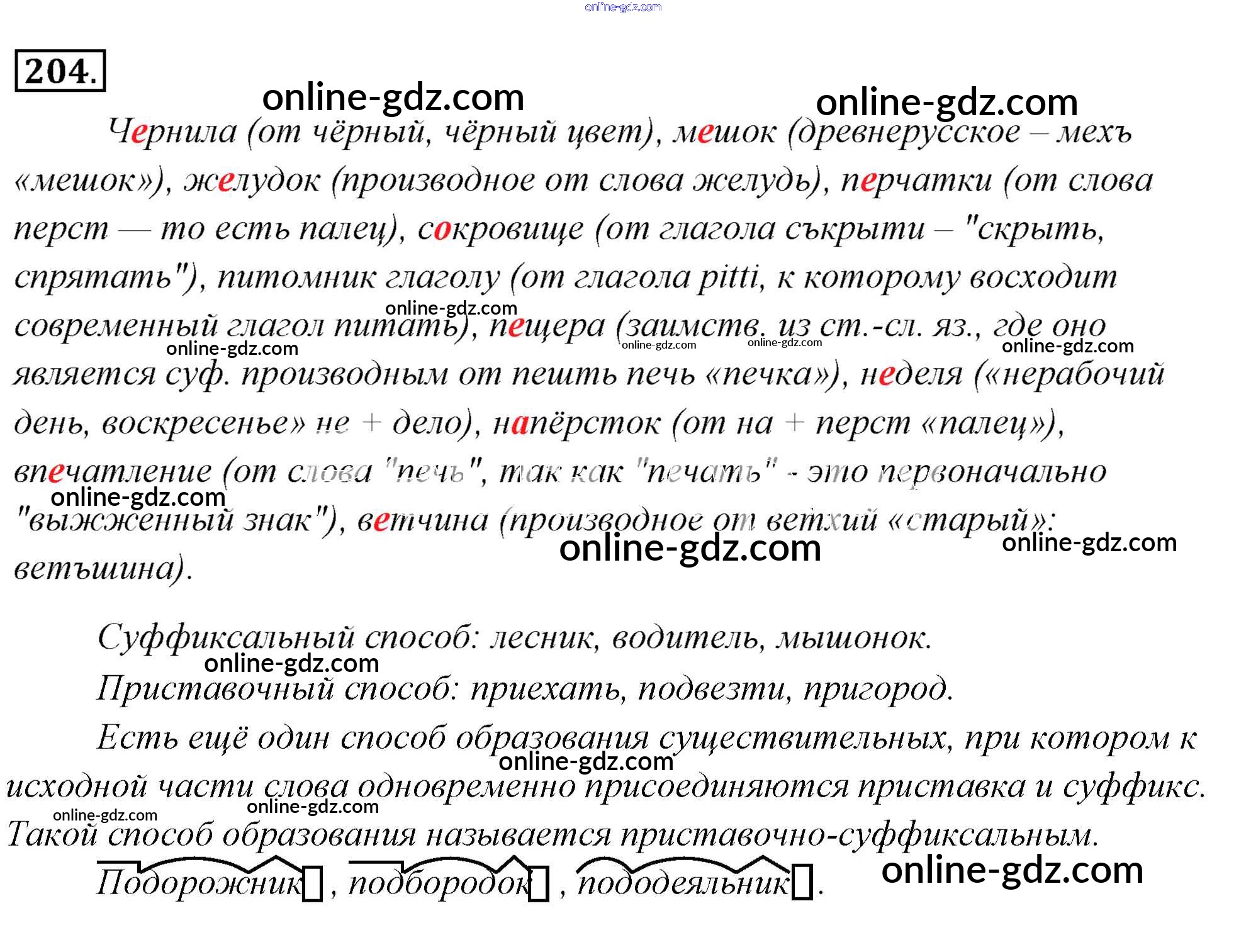 Готовые домашние задания по Русскому языку за 6 класс Учебник Львова, Львов 2013 - Упражнения 204