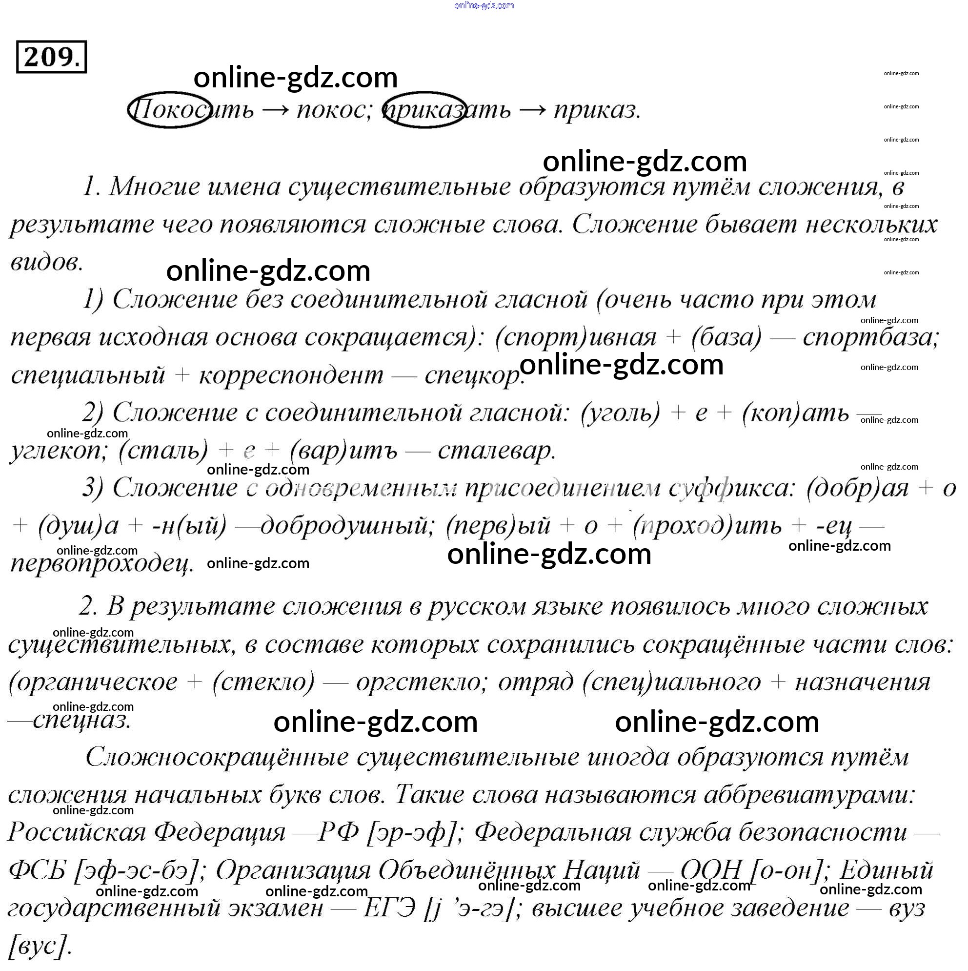 Готовые домашние задания по Русскому языку за 6 класс Учебник Львова, Львов 2013 - Упражнения 209