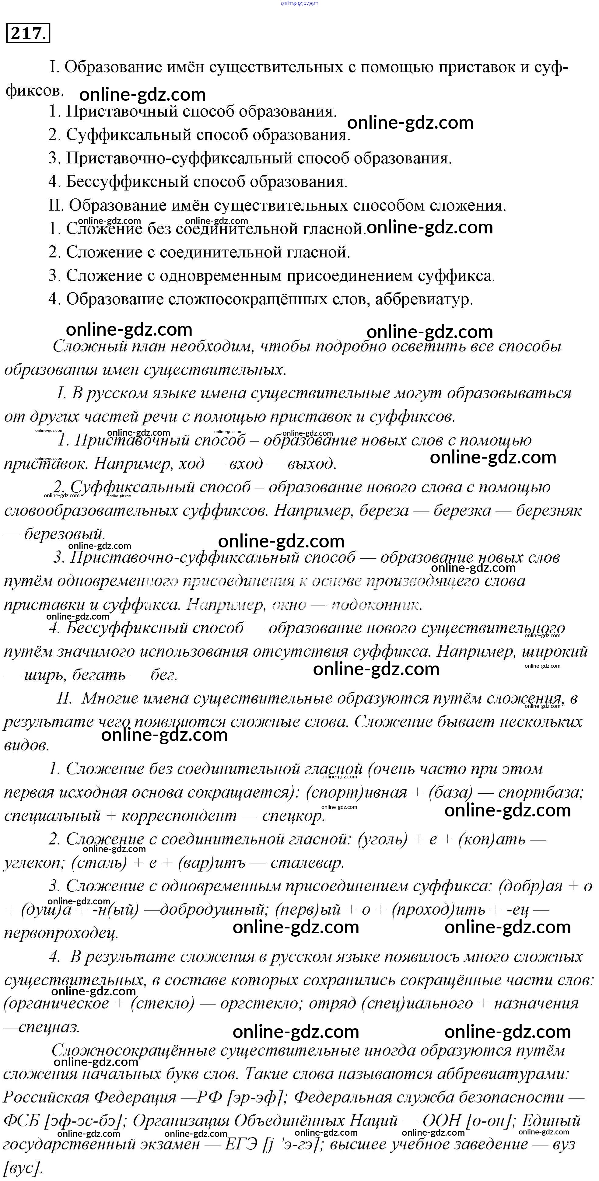 Готовые домашние задания по Русскому языку за 6 класс Учебник Львова, Львов 2013 - Упражнения 217