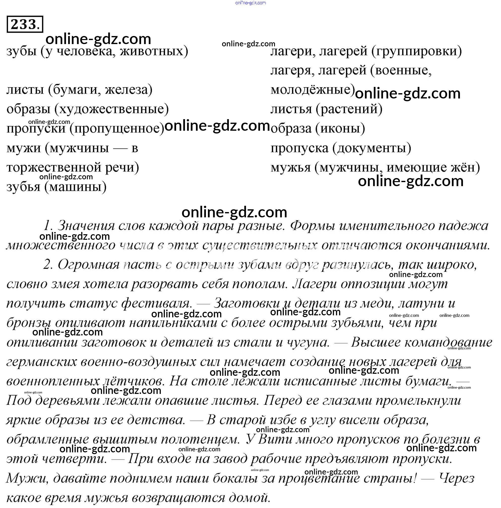 Готовые домашние задания по Русскому языку за 6 класс Учебник Львова, Львов 2013 - Упражнения 233