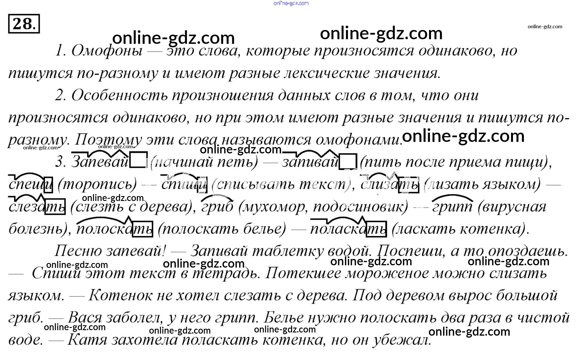 Готовые домашние задания по Русскому языку за 6 класс Учебник Львова, Львов 2013 - Упражнения 28