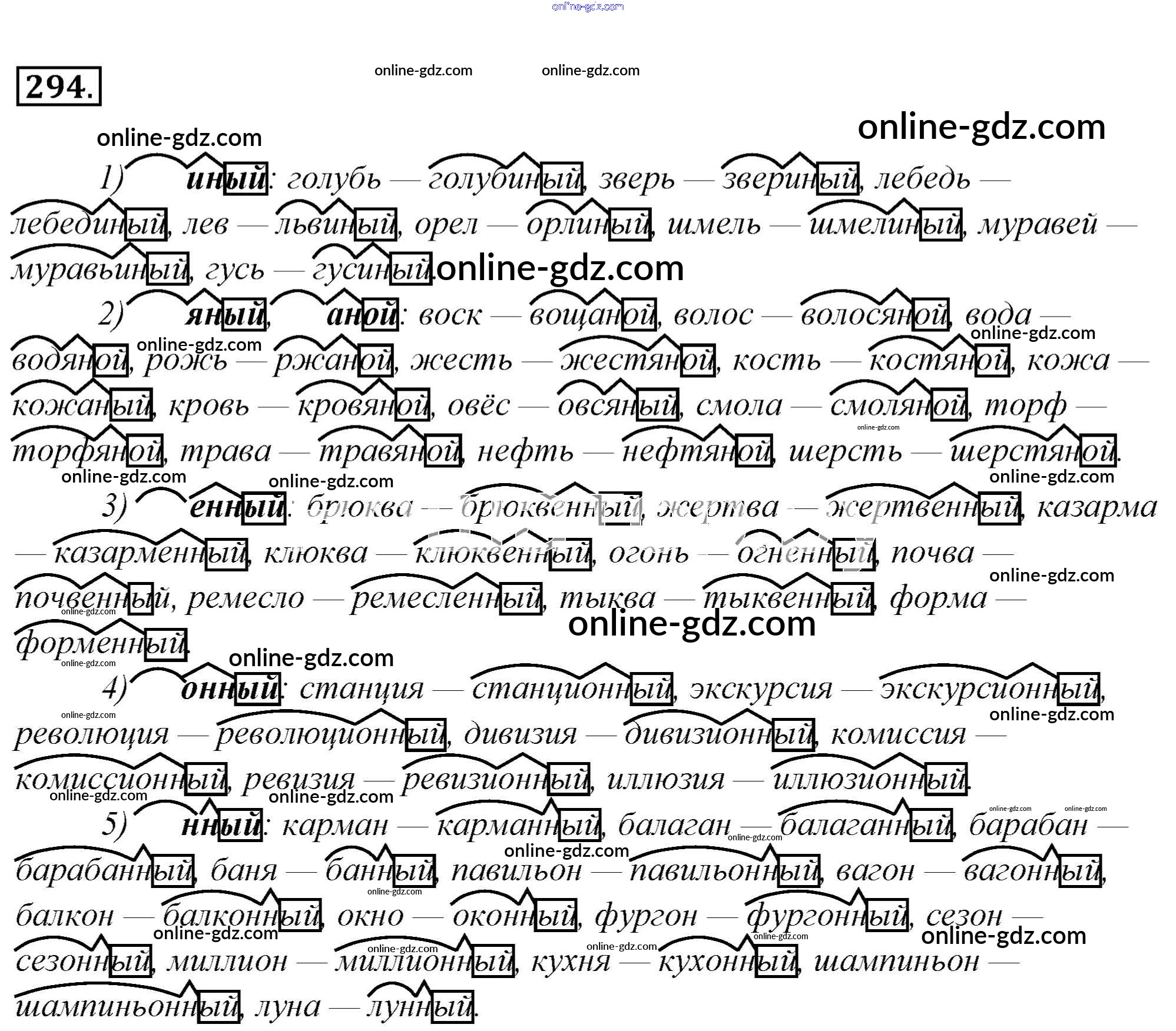 Готовые домашние задания по Русскому языку за 6 класс Учебник Львова, Львов 2013 - Упражнения 294