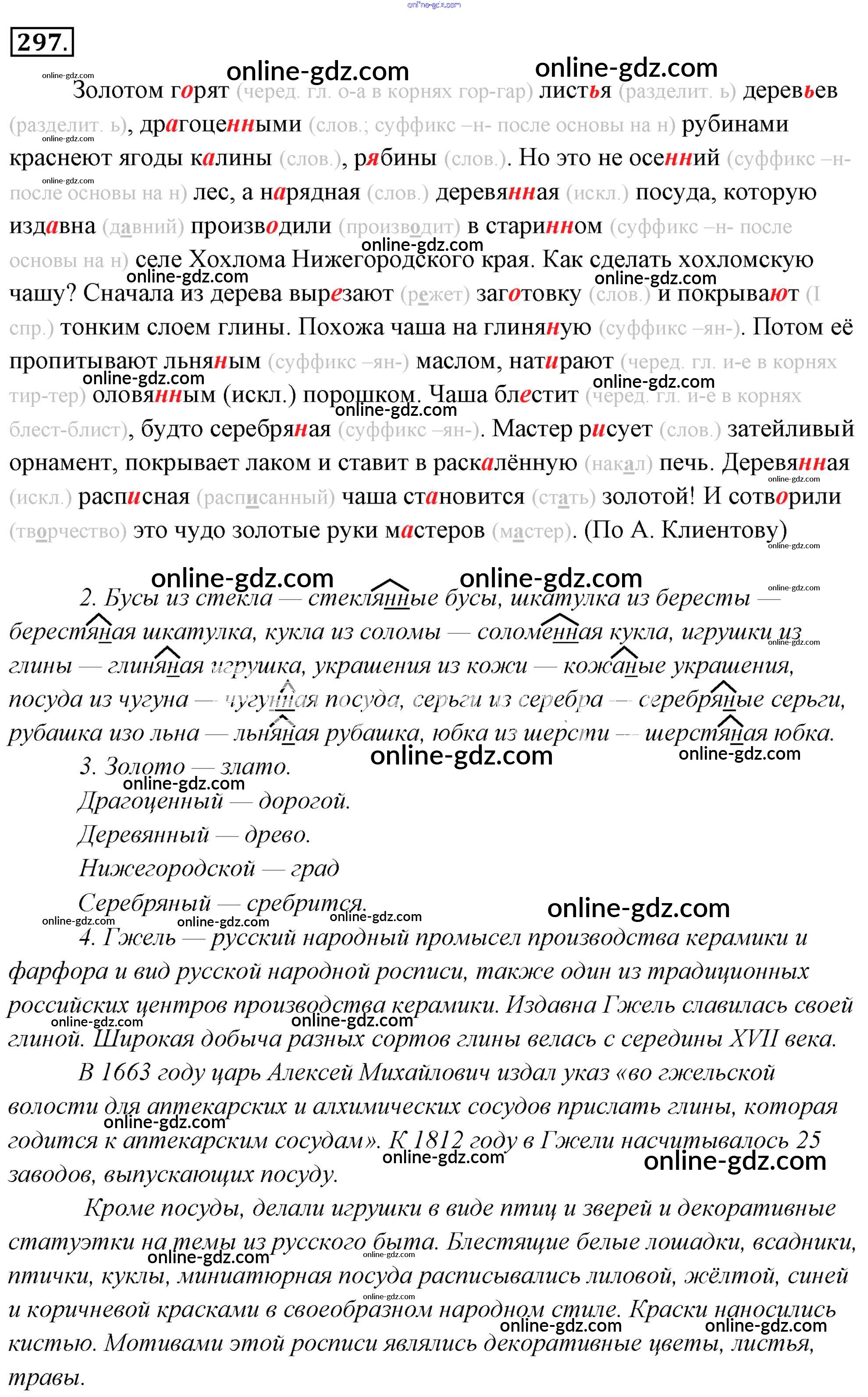 Готовые домашние задания по Русскому языку за 6 класс Учебник Львова, Львов 2013 - Упражнения 297