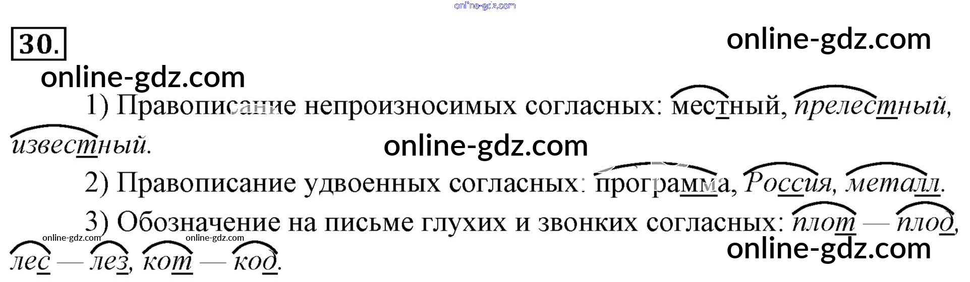 Готовые домашние задания по Русскому языку за 6 класс Учебник Львова, Львов 2013 - Упражнения 30