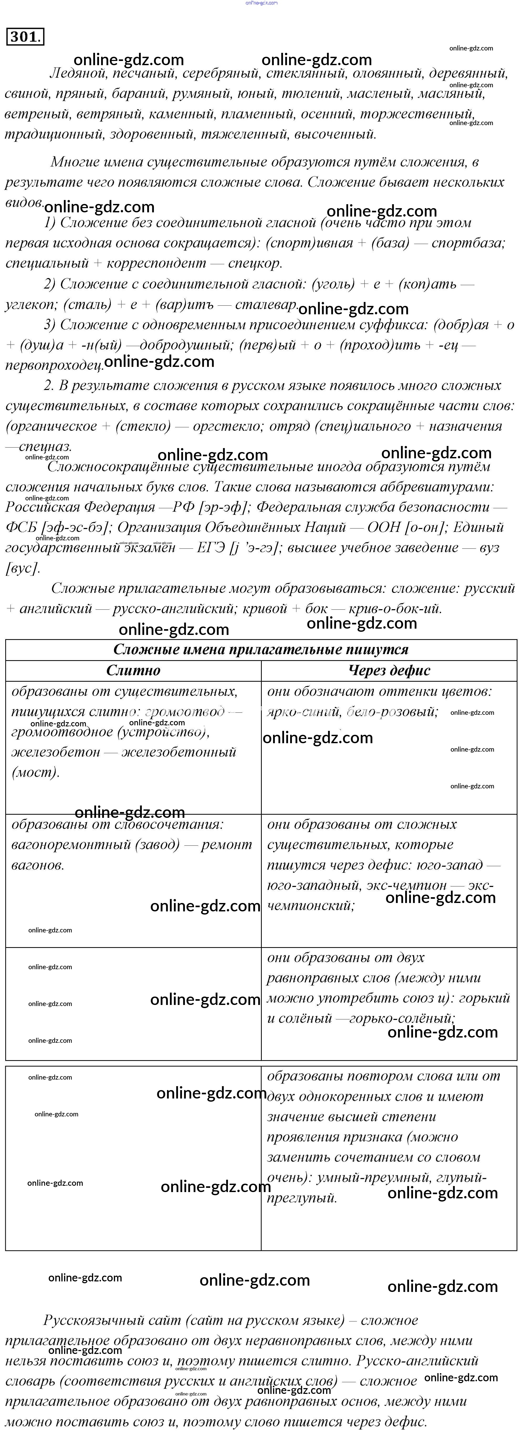 Готовые домашние задания по Русскому языку за 6 класс Учебник Львова, Львов 2013 - Упражнения 301