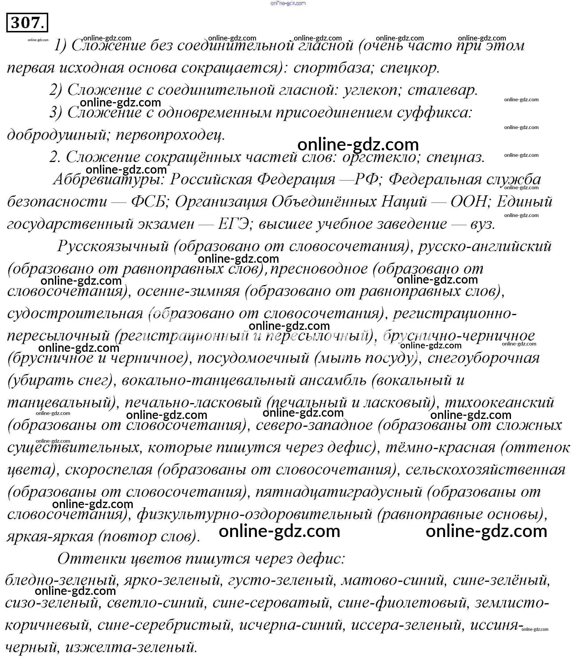 Готовые домашние задания по Русскому языку за 6 класс Учебник Львова, Львов 2013 - Упражнения 307