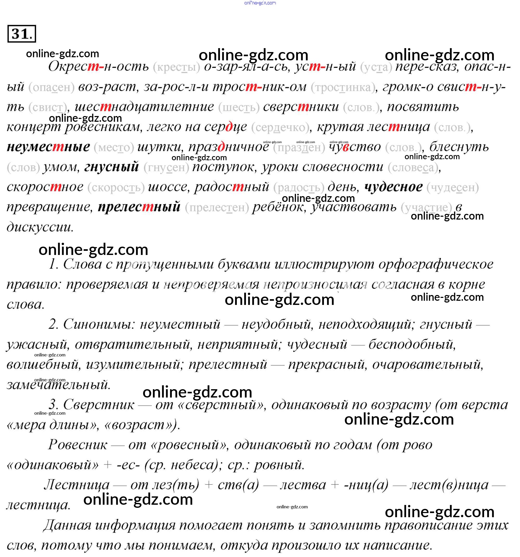 Готовые домашние задания по Русскому языку за 6 класс Учебник Львова, Львов 2013 - Упражнения 31