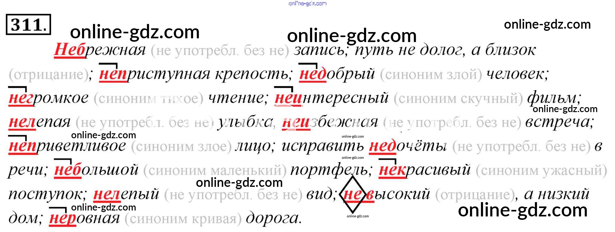 Готовые домашние задания по Русскому языку за 6 класс Учебник Львова, Львов 2013 - Упражнения 311