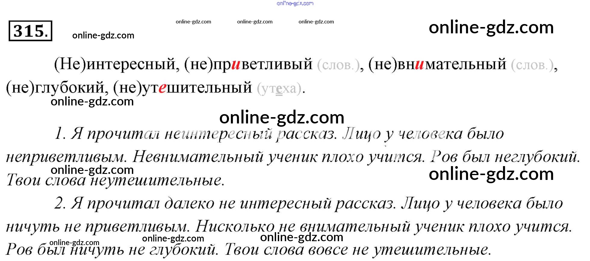 Готовые домашние задания по Русскому языку за 6 класс Учебник Львова, Львов 2013 - Упражнения 315