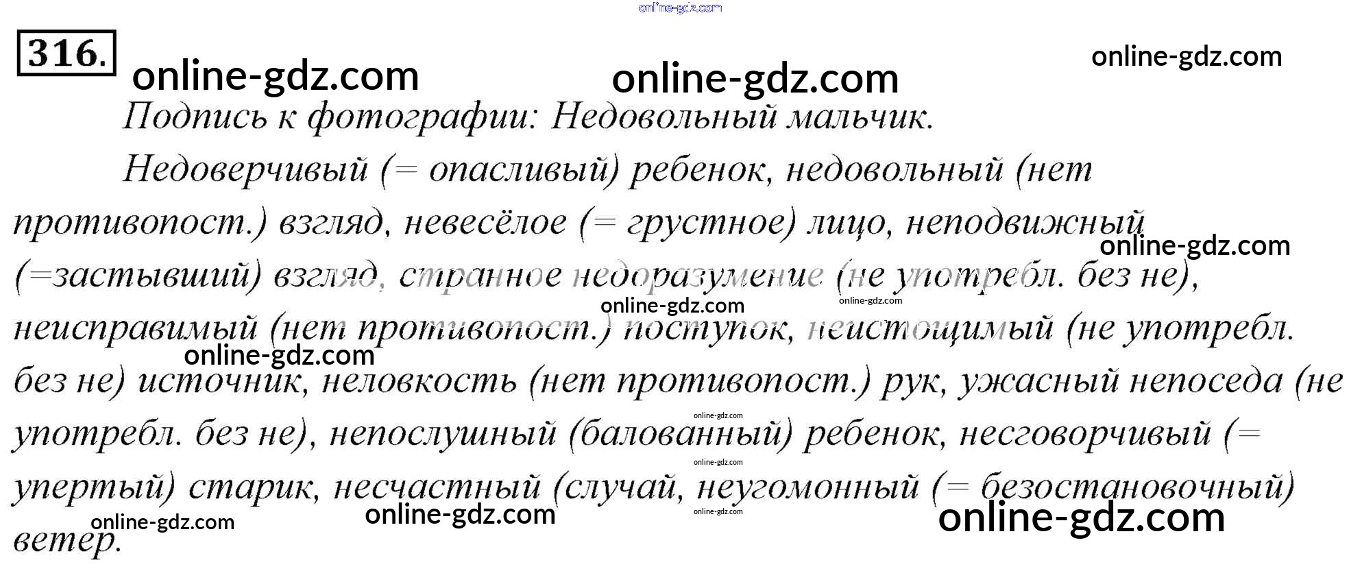 Готовые домашние задания по Русскому языку за 6 класс Учебник Львова, Львов 2013 - Упражнения 316