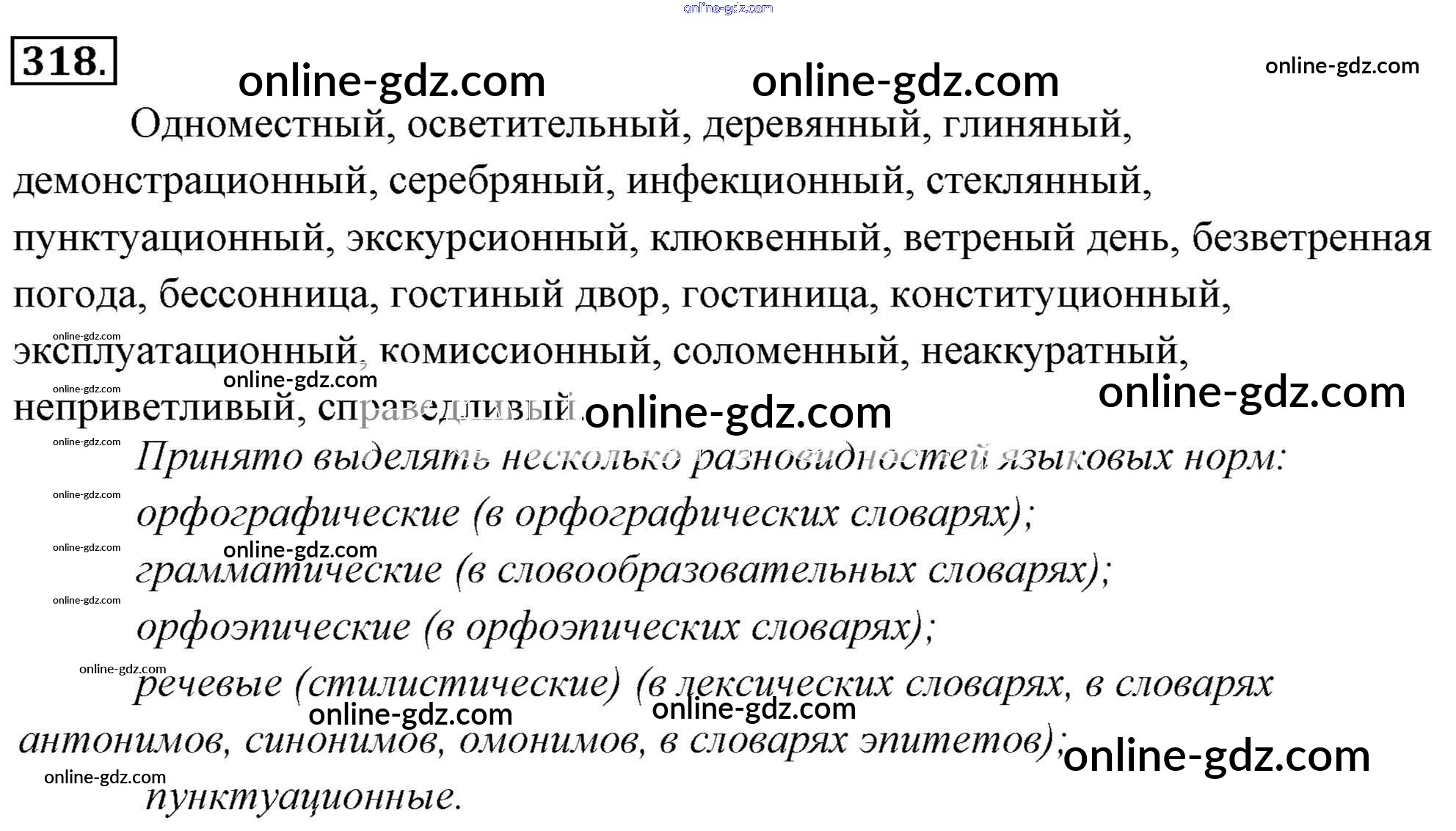 Готовые домашние задания по Русскому языку за 6 класс Учебник Львова, Львов 2013 - Упражнения 318