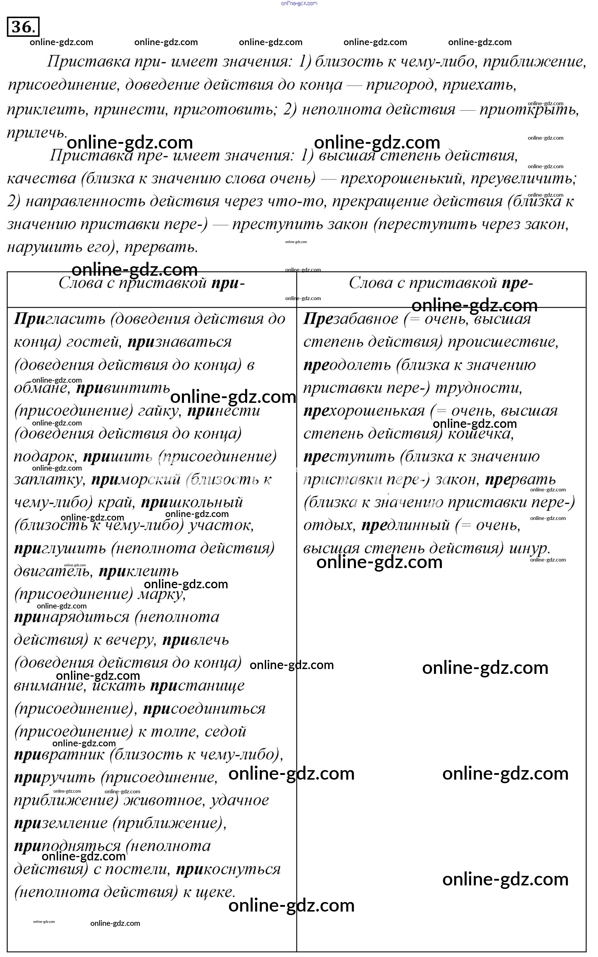 Готовые домашние задания по Русскому языку за 6 класс Учебник Львова, Львов 2013 - Упражнения 36