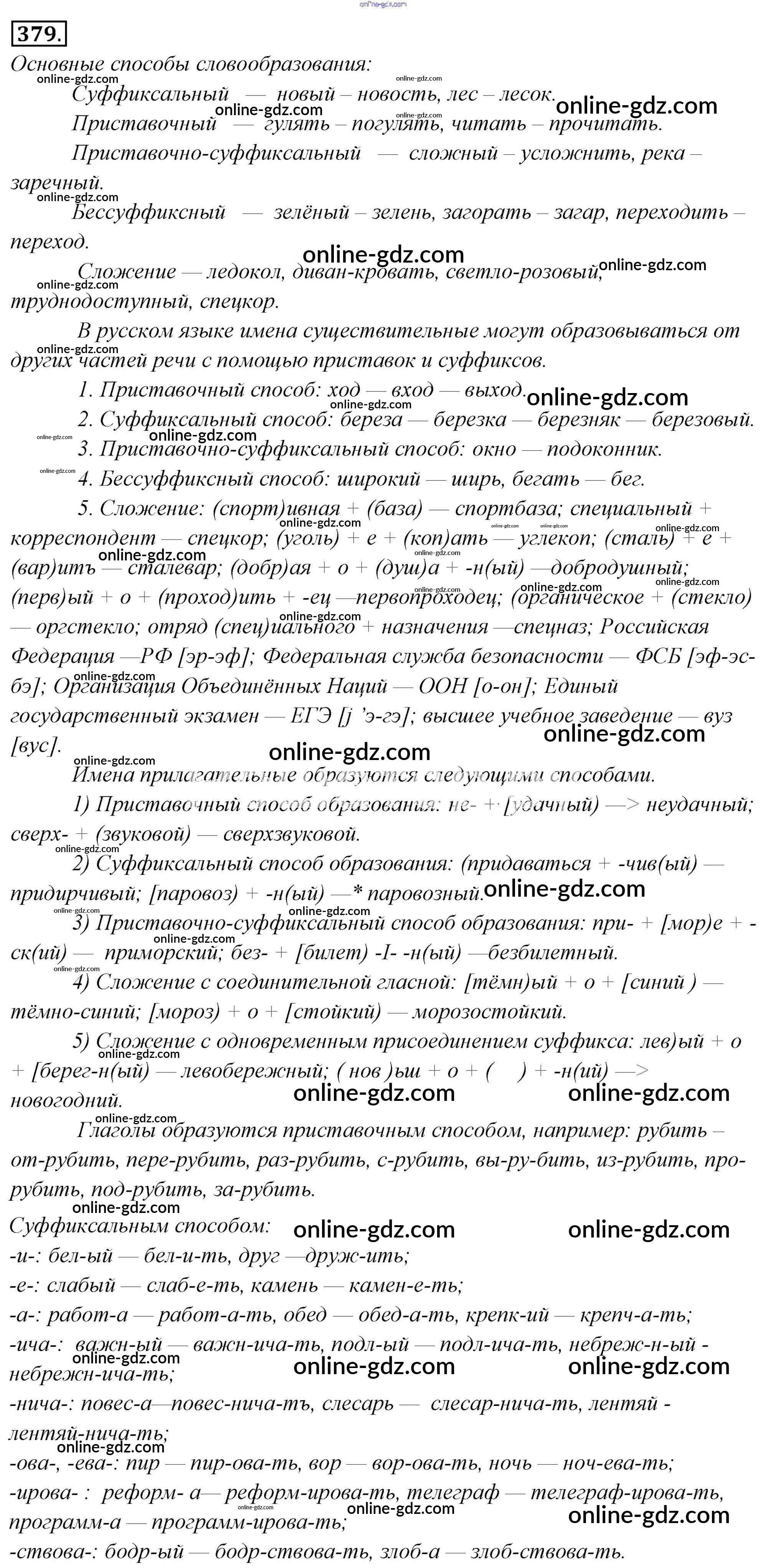 Готовые домашние задания по Русскому языку за 6 класс Учебник Львова, Львов 2013 - Упражнения 379