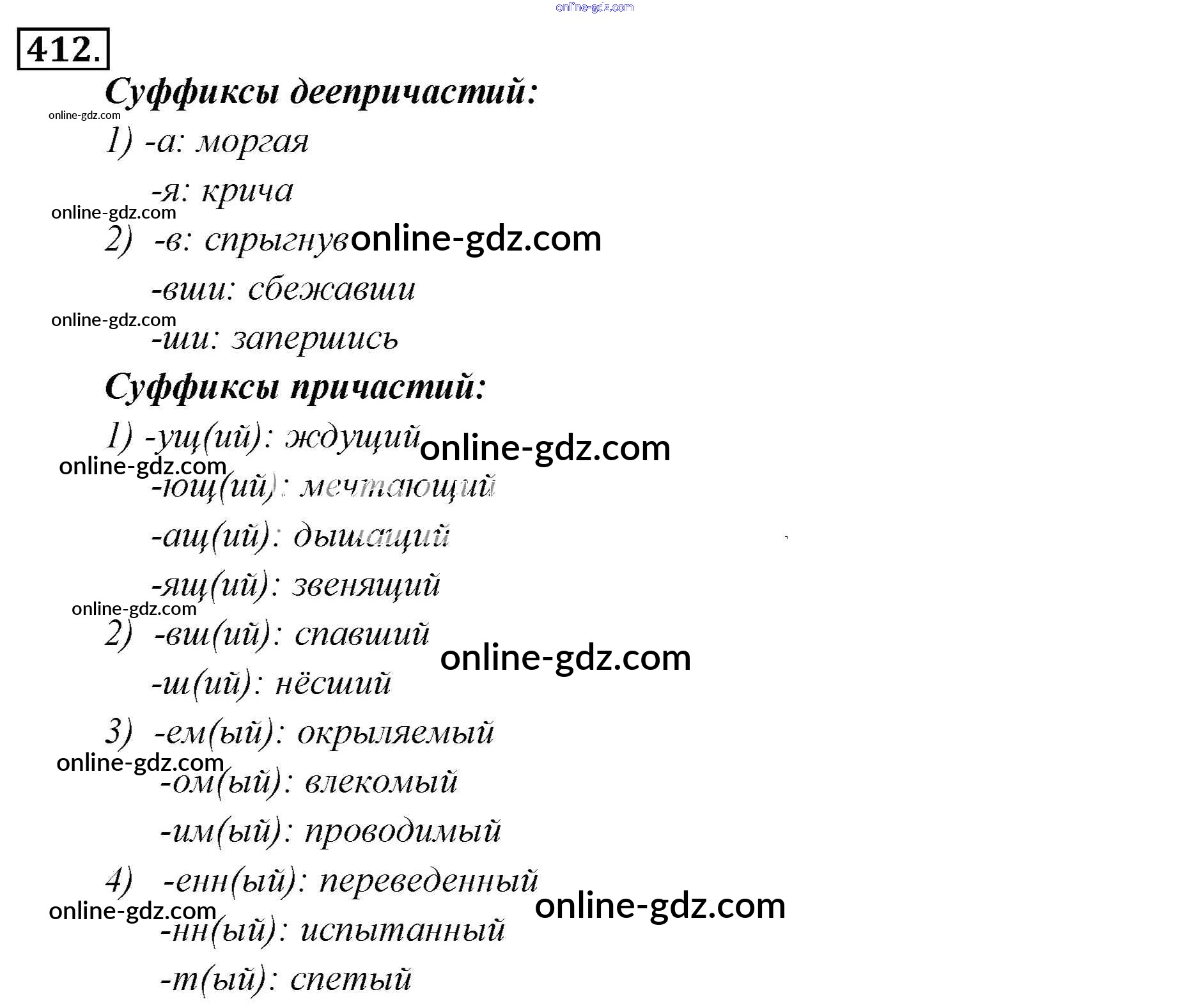Готовые домашние задания по Русскому языку за 6 класс Учебник Львова, Львов 2013 - Упражнения 412