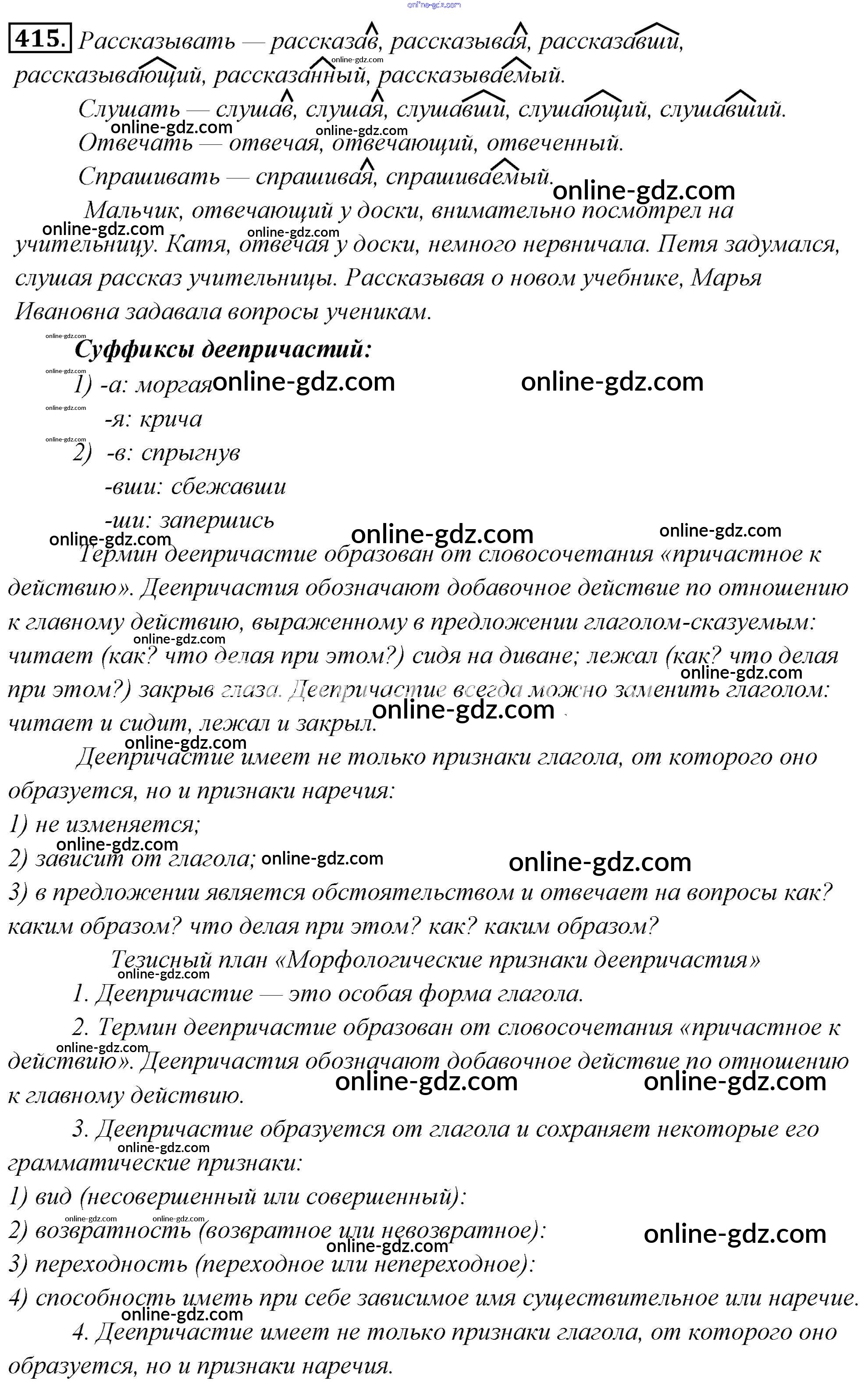 Готовые домашние задания по Русскому языку за 6 класс Учебник Львова, Львов 2013 - Упражнения 415