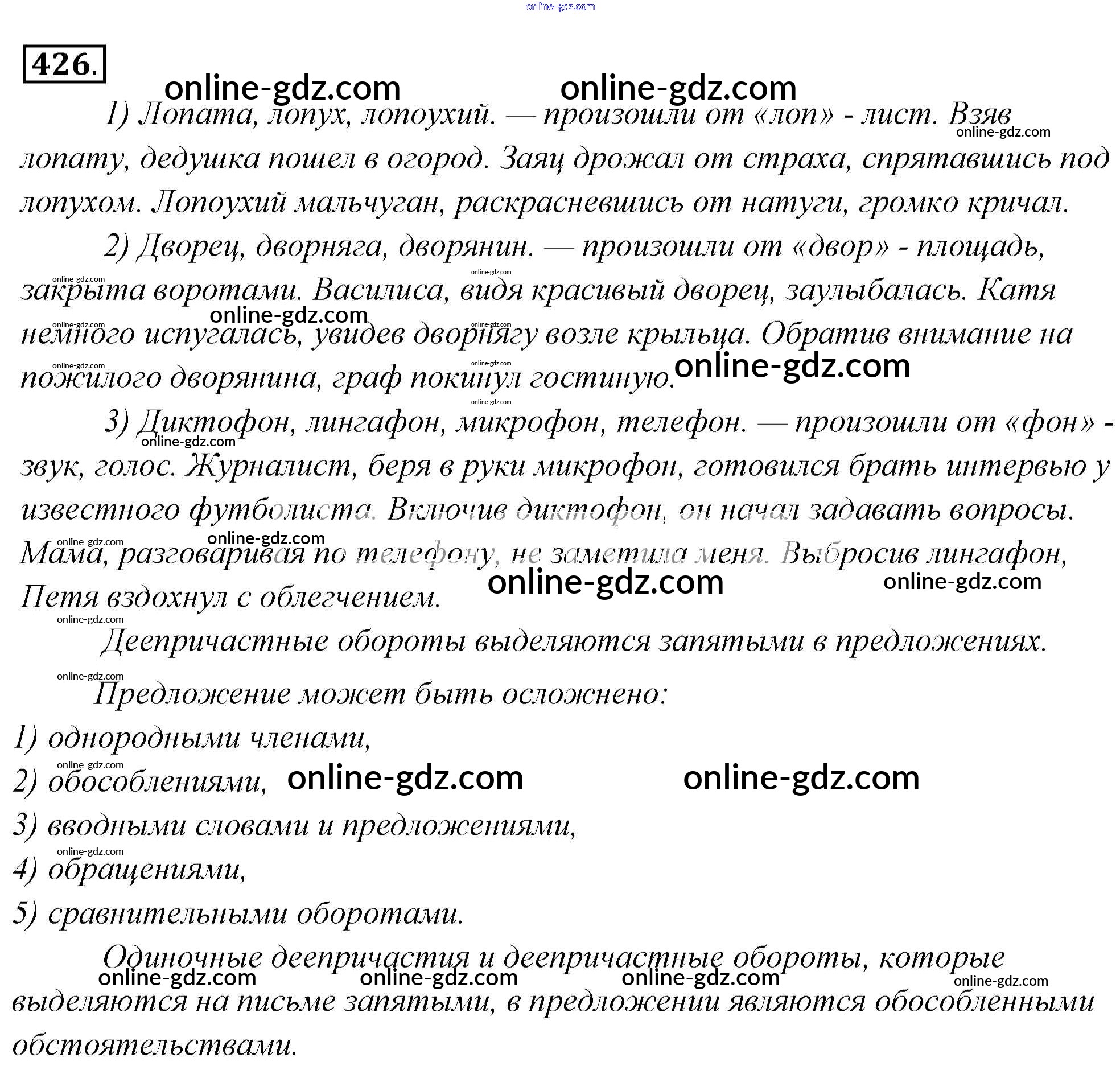 Готовые домашние задания по Русскому языку за 6 класс Учебник Львова, Львов 2013 - Упражнения 426