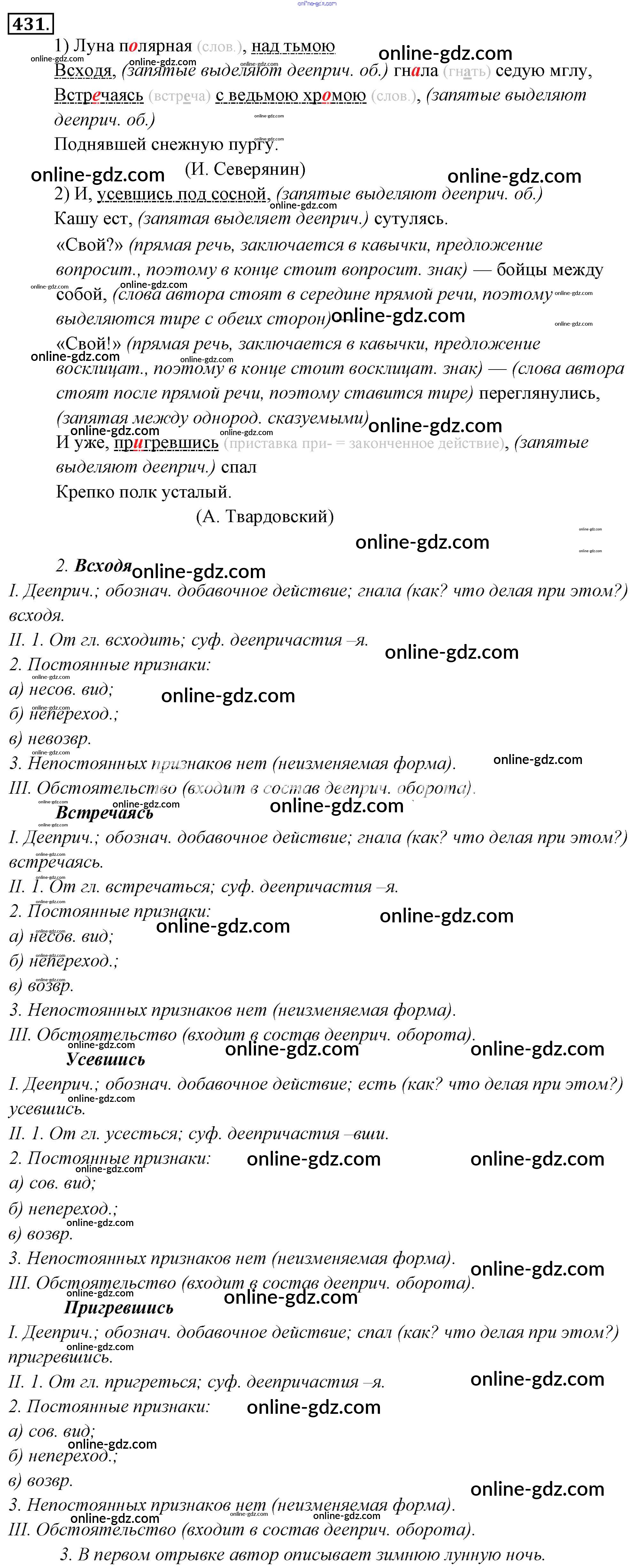 Готовые домашние задания по Русскому языку за 6 класс Учебник Львова, Львов 2013 - Упражнения 431