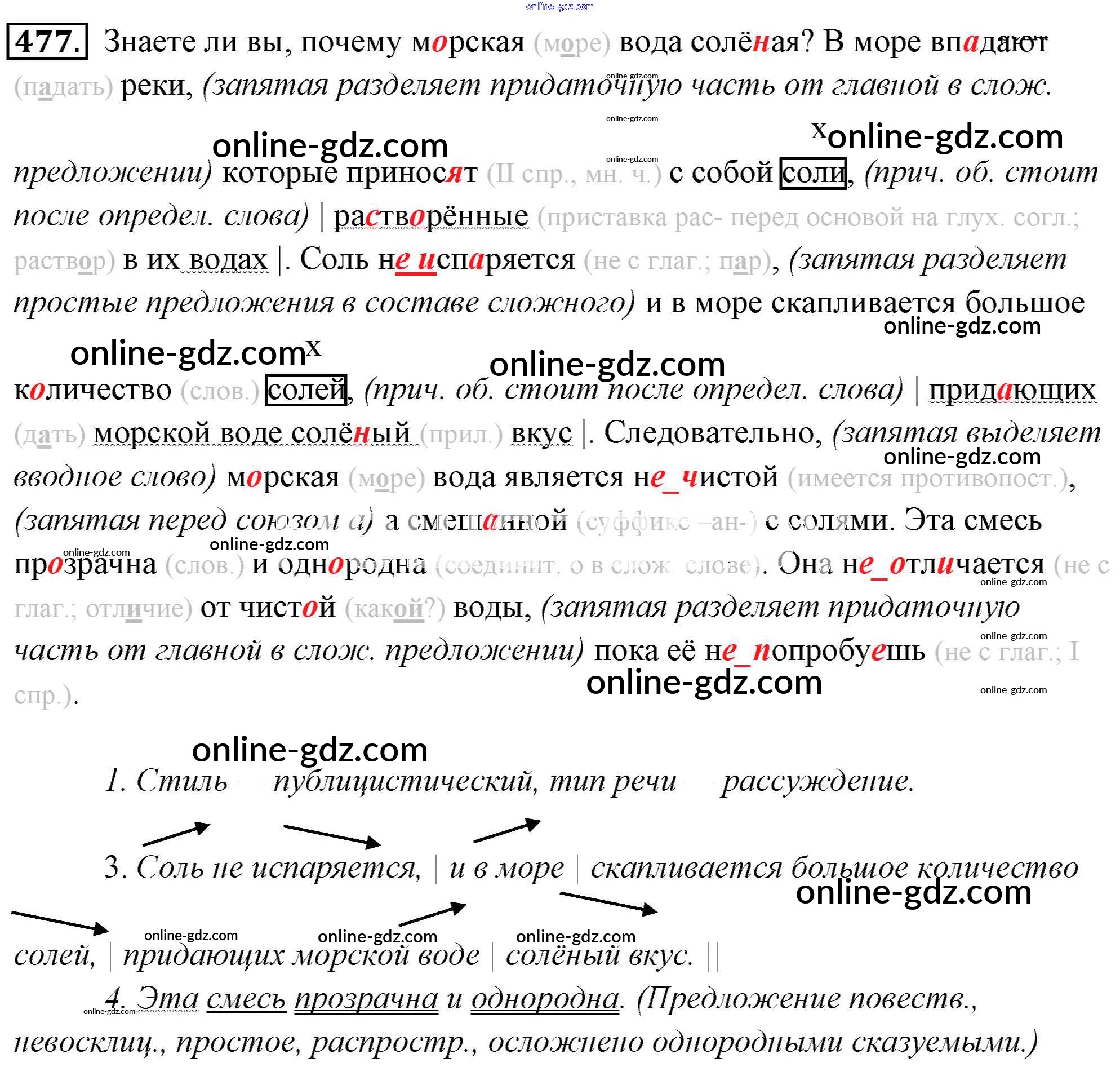 Готовые домашние задания по Русскому языку за 6 класс Учебник Львова, Львов 2013 - Упражнения 477