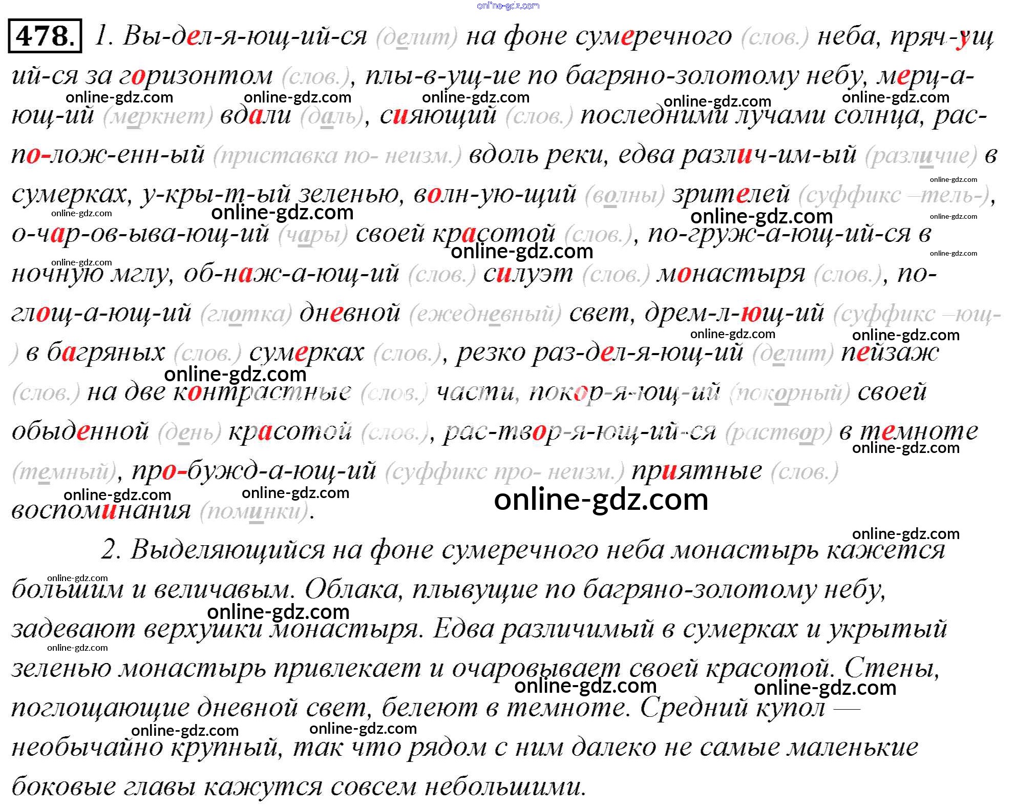 Готовые домашние задания по Русскому языку за 6 класс Учебник Львова, Львов 2013 - Упражнения 478