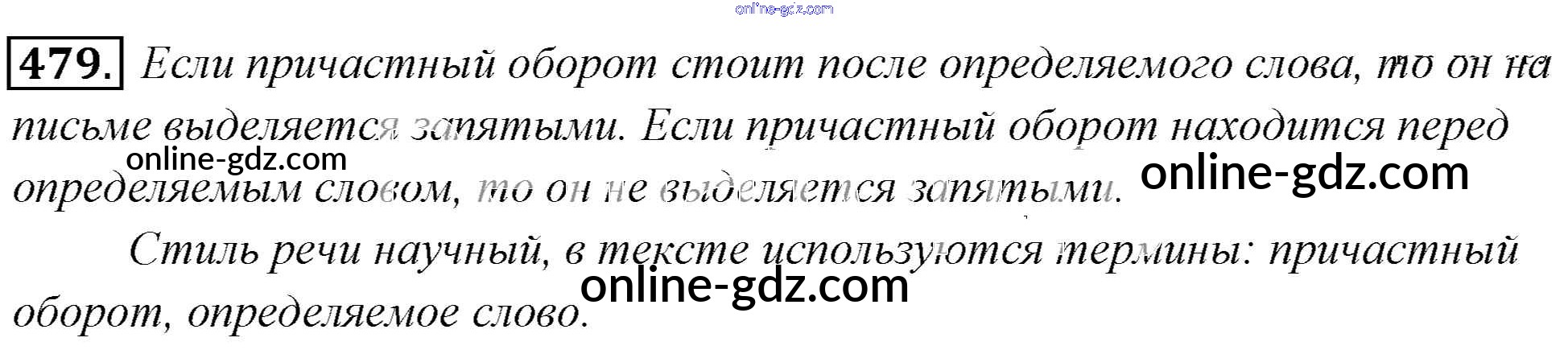 Готовые домашние задания по Русскому языку за 6 класс Учебник Львова, Львов 2013 - Упражнения 479
