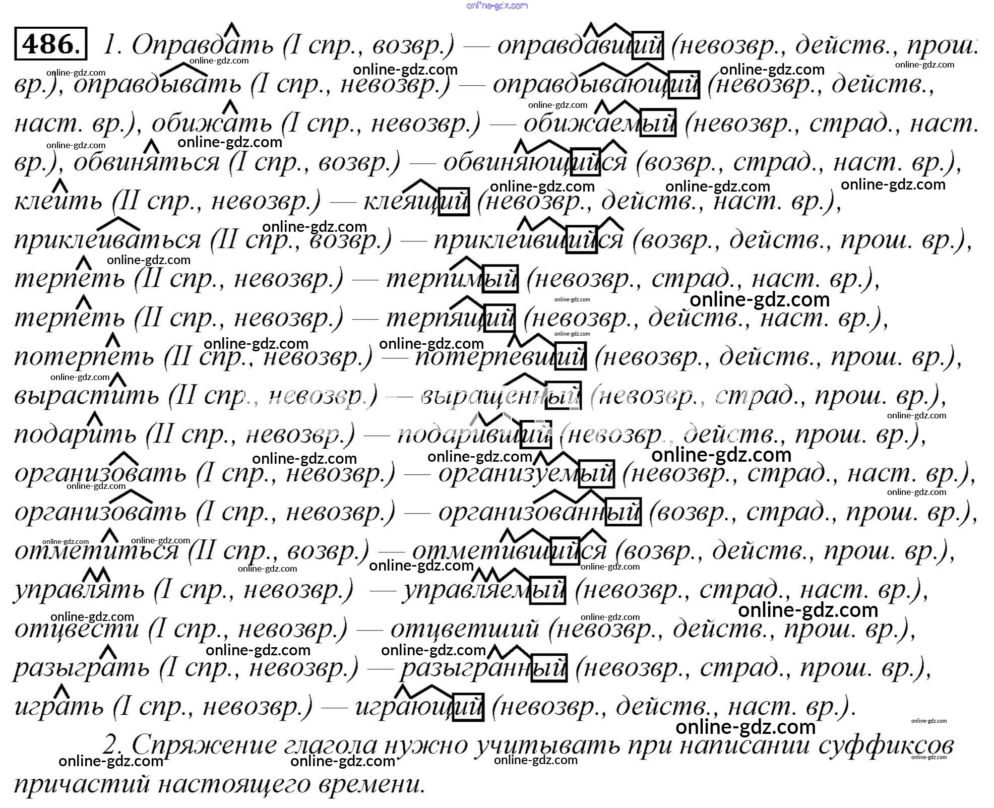 Готовые домашние задания по Русскому языку за 6 класс Учебник Львова, Львов 2013 - Упражнения 486