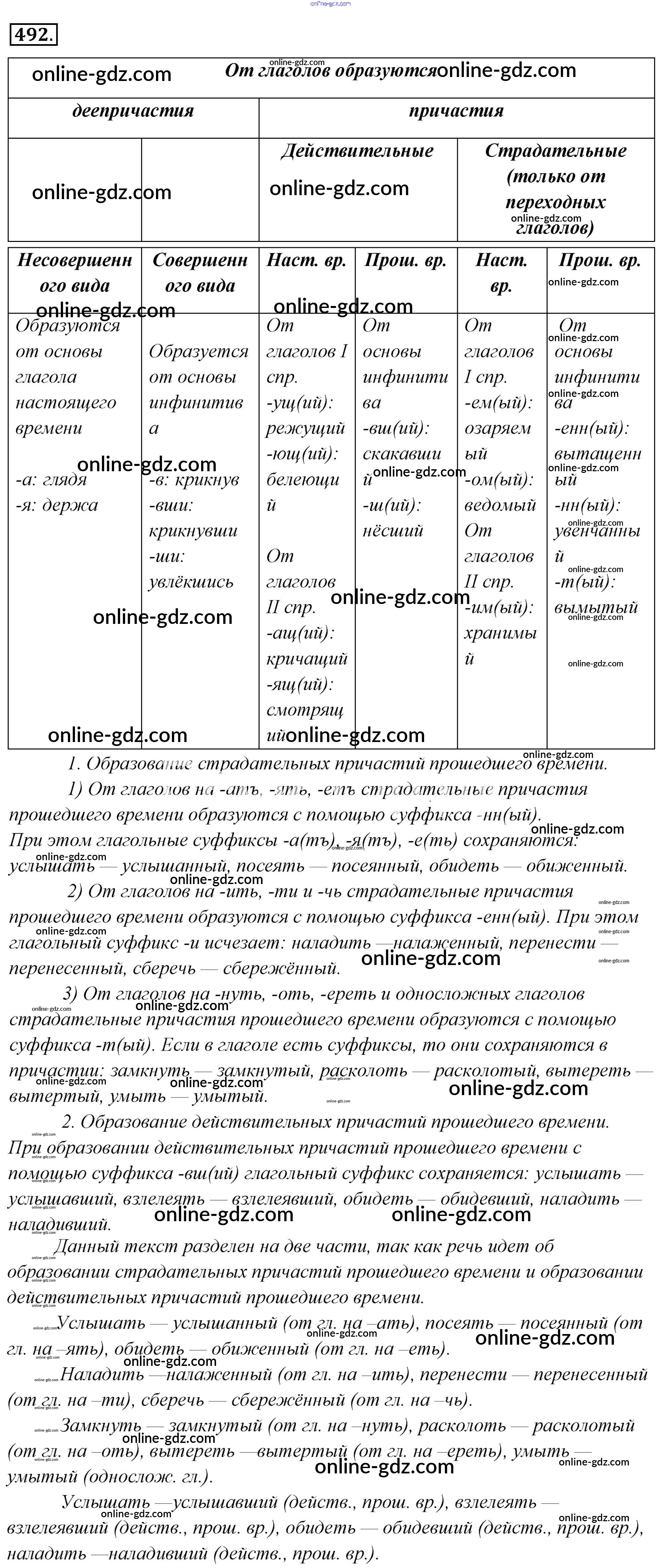 Готовые домашние задания по Русскому языку за 6 класс Учебник Львова, Львов 2013 - Упражнения 492