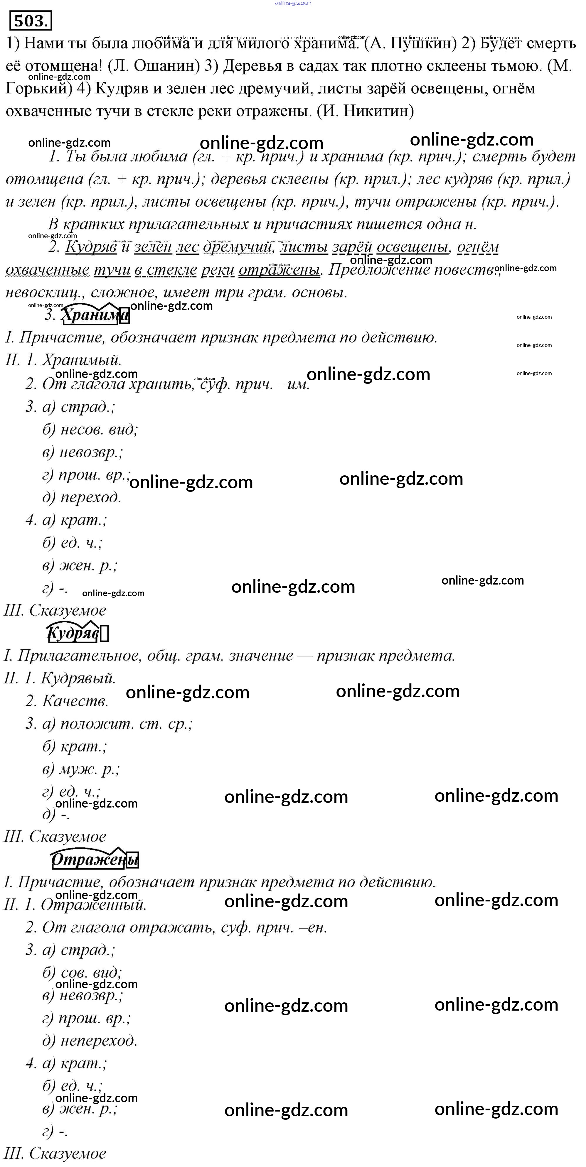 Готовые домашние задания по Русскому языку за 6 класс Учебник Львова, Львов 2013 - Упражнения 503