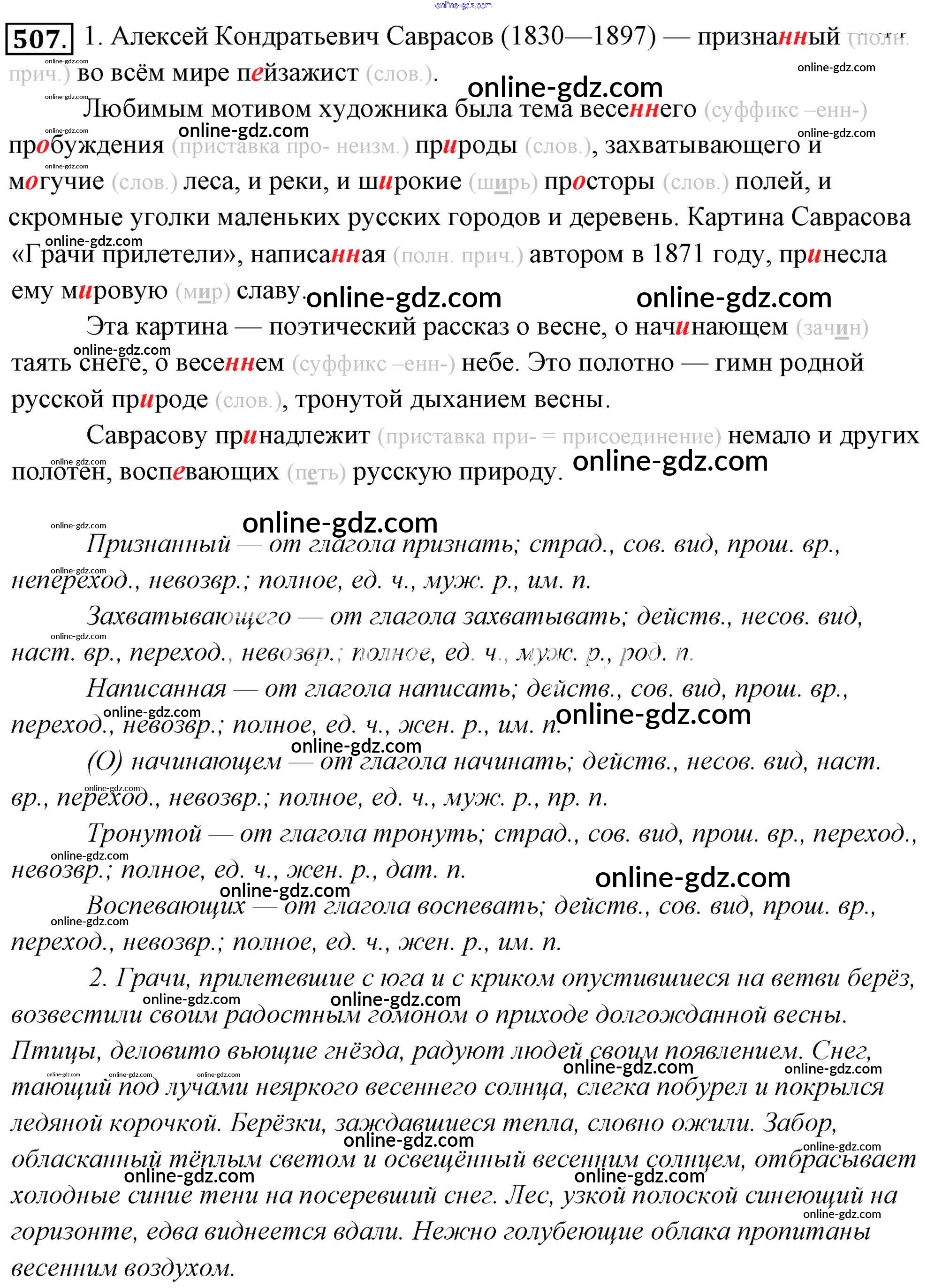 Готовые домашние задания по Русскому языку за 6 класс Учебник Львова, Львов 2013 - Упражнения 507