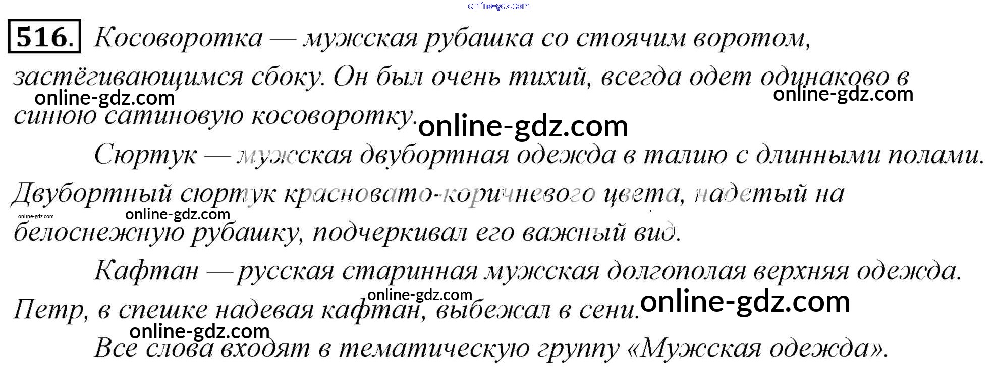 Готовые домашние задания по Русскому языку за 6 класс Учебник Львова, Львов 2013 - Упражнения 516