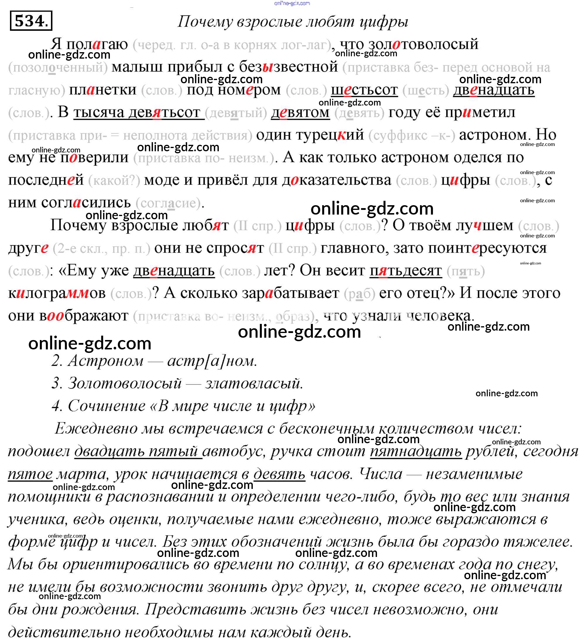 Готовые домашние задания по Русскому языку за 6 класс Учебник Львова, Львов 2013 - Упражнения 534