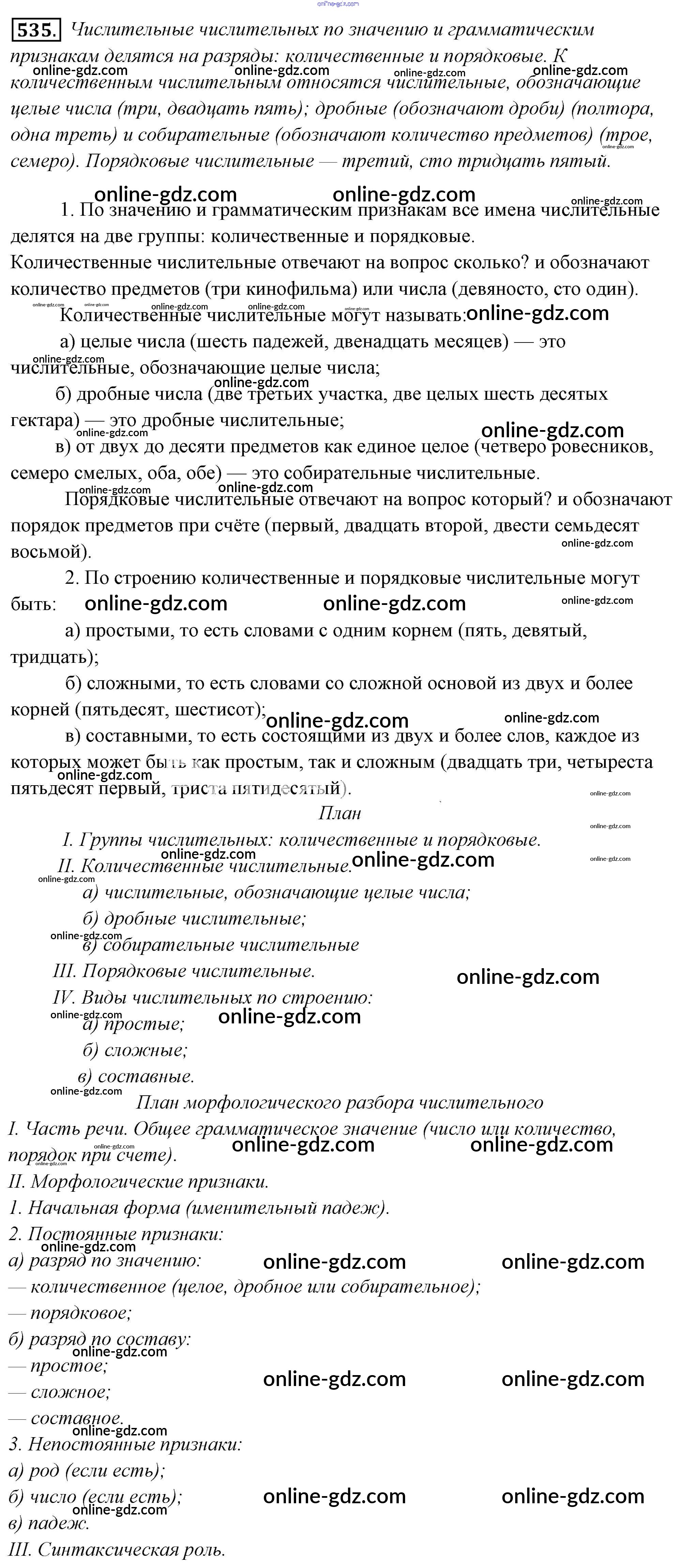 Готовые домашние задания по Русскому языку за 6 класс Учебник Львова, Львов 2013 - Упражнения 535