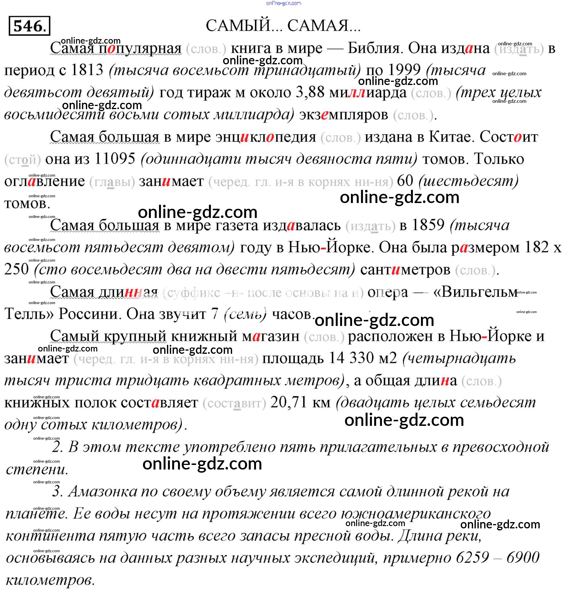 Готовые домашние задания по Русскому языку за 6 класс Учебник Львова, Львов 2013 - Упражнения 546