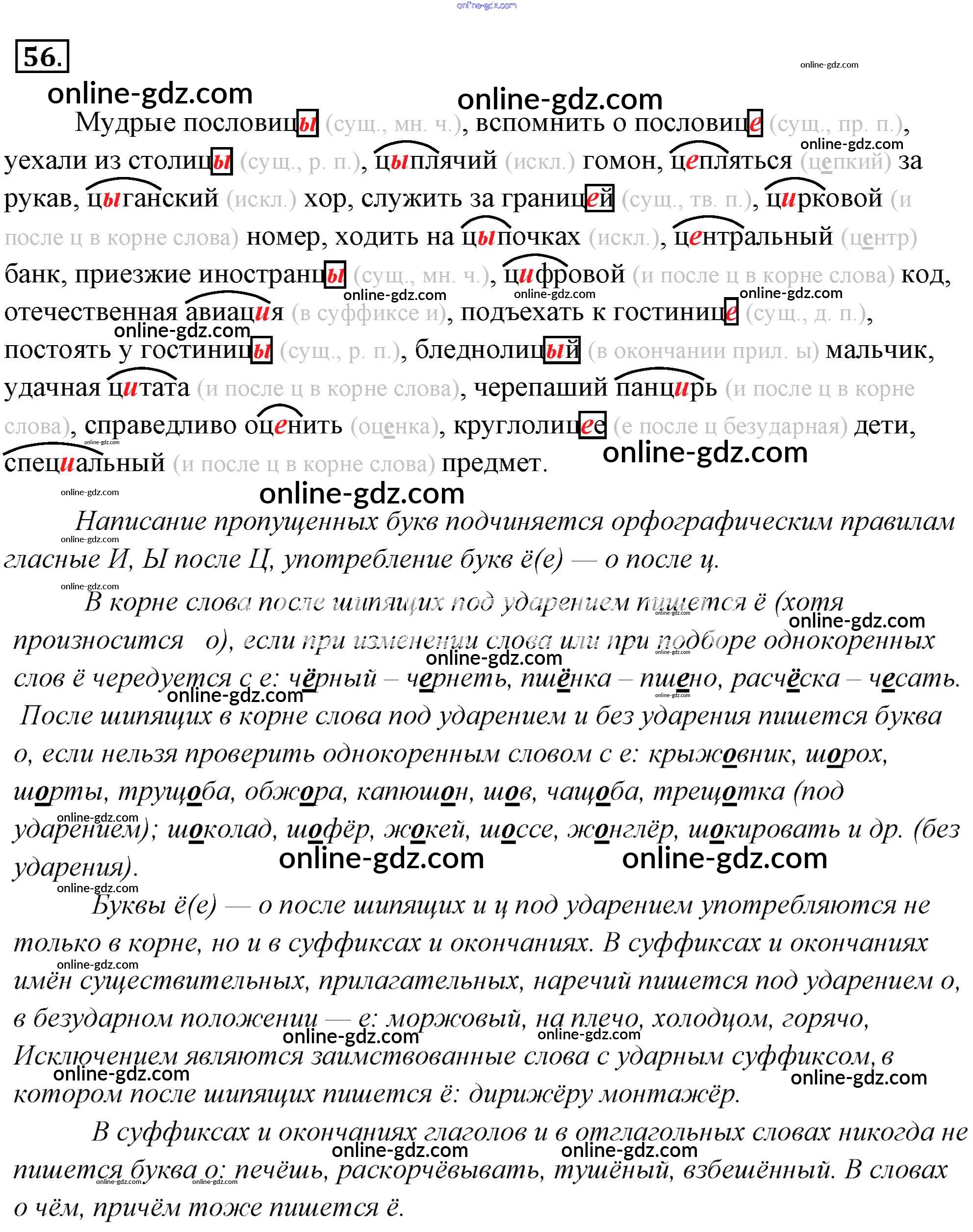 Готовые домашние задания по Русскому языку за 6 класс Учебник Львова, Львов 2013 - Упражнения 56