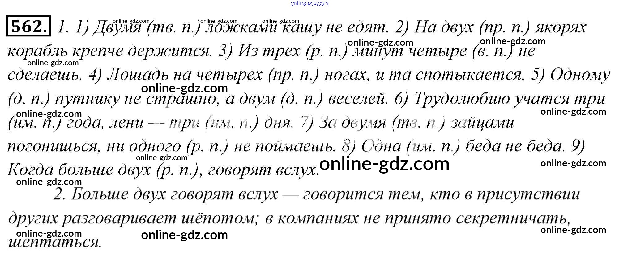 Готовые домашние задания по Русскому языку за 6 класс Учебник Львова, Львов 2013 - Упражнения 562