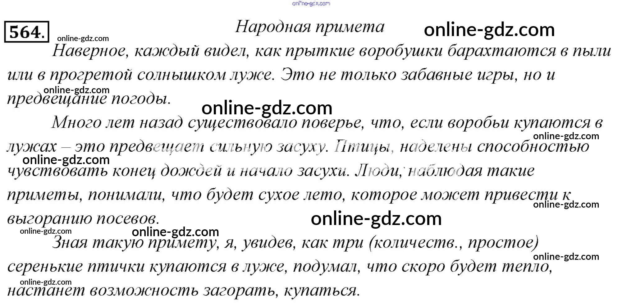 Готовые домашние задания по Русскому языку за 6 класс Учебник Львова, Львов 2013 - Упражнения 564
