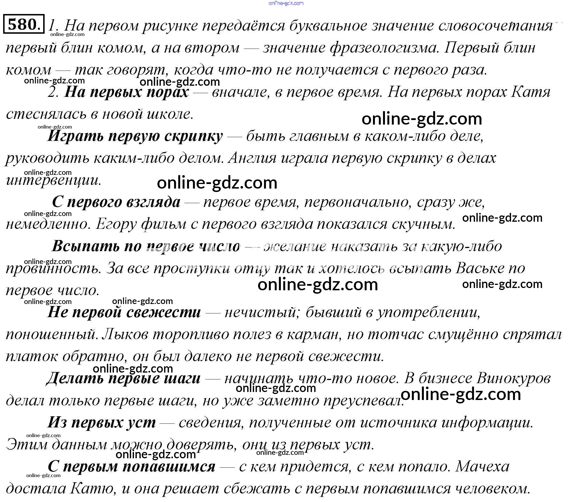 Готовые домашние задания по Русскому языку за 6 класс Учебник Львова, Львов 2013 - Упражнения 580
