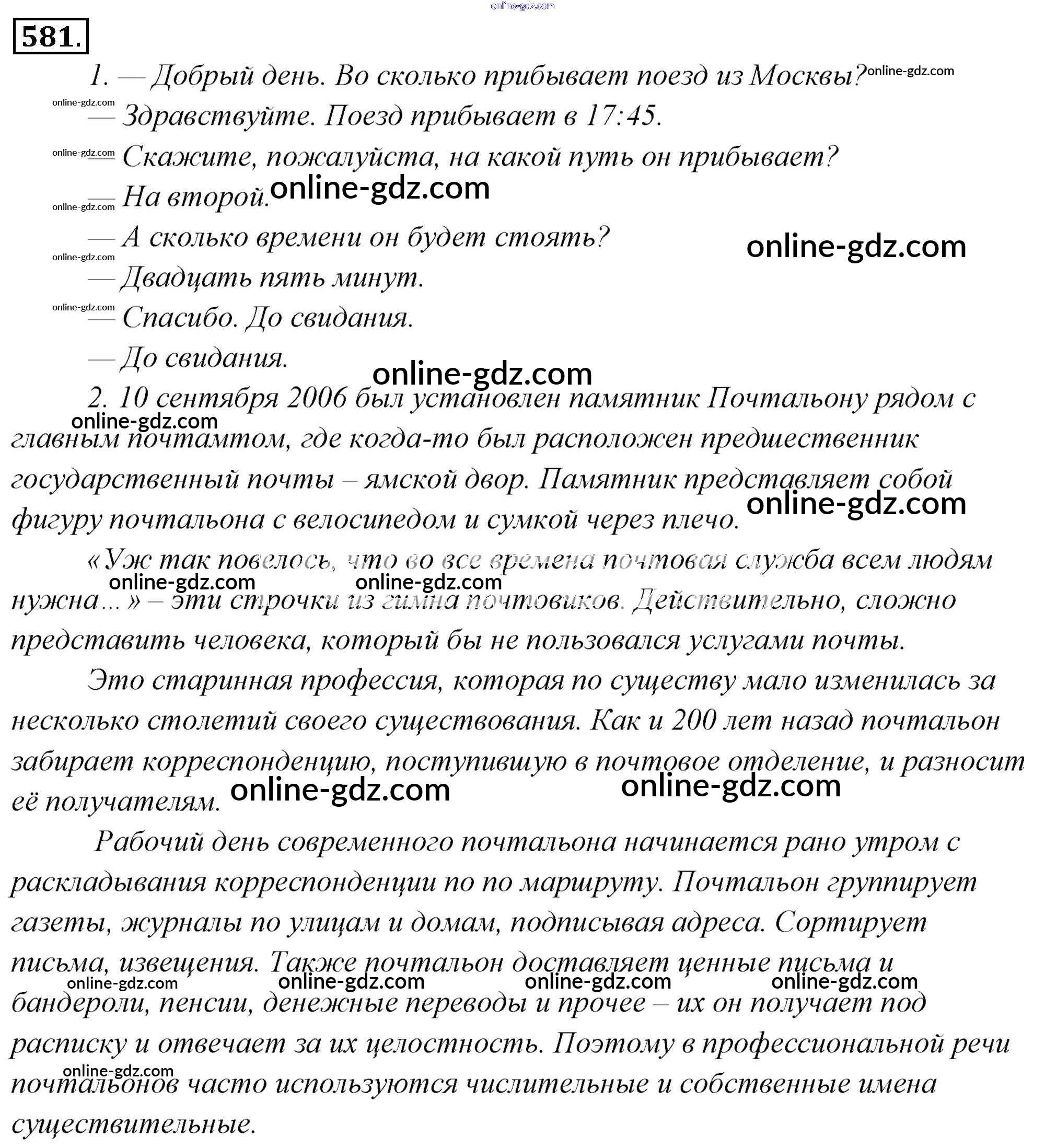 Готовые домашние задания по Русскому языку за 6 класс Учебник Львова, Львов 2013 - Упражнения 581